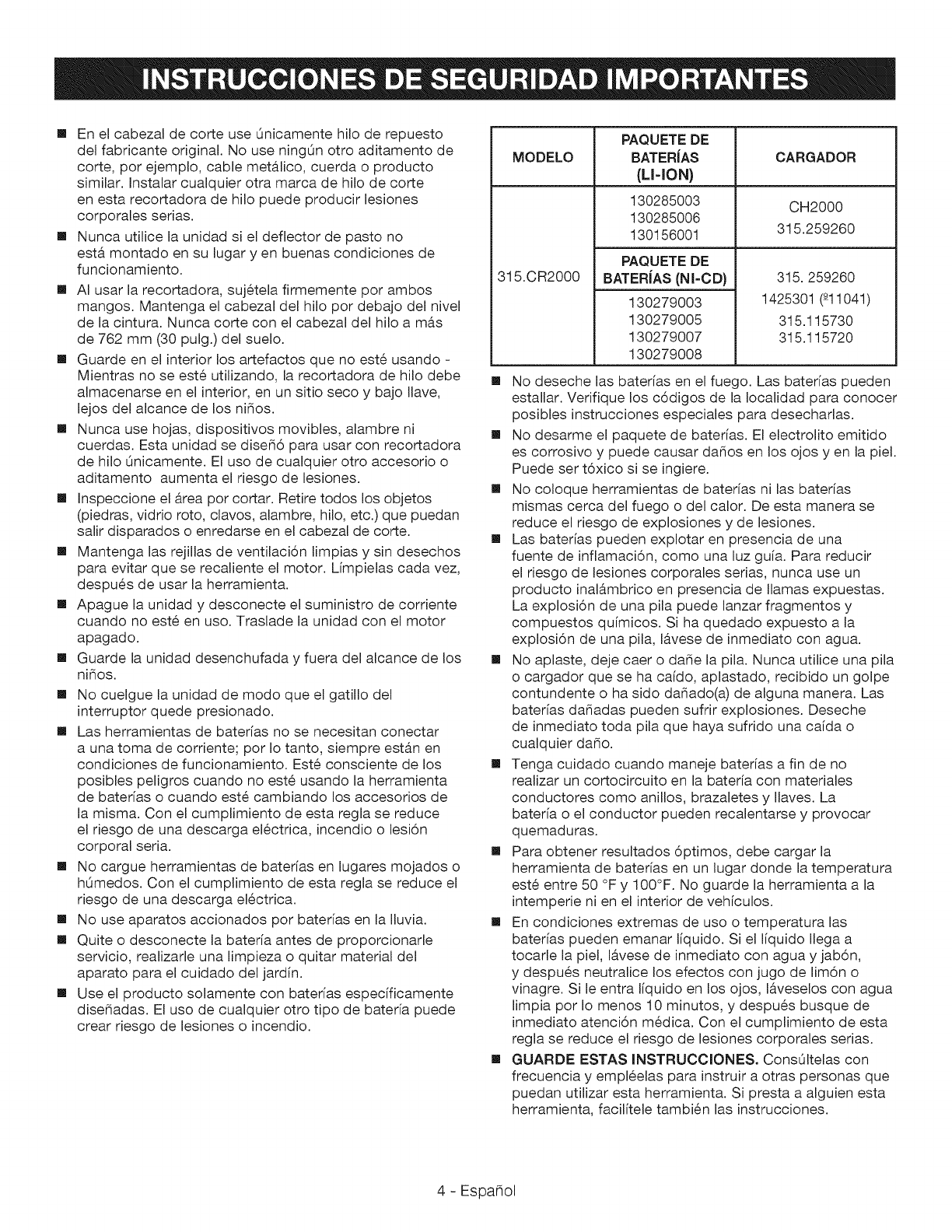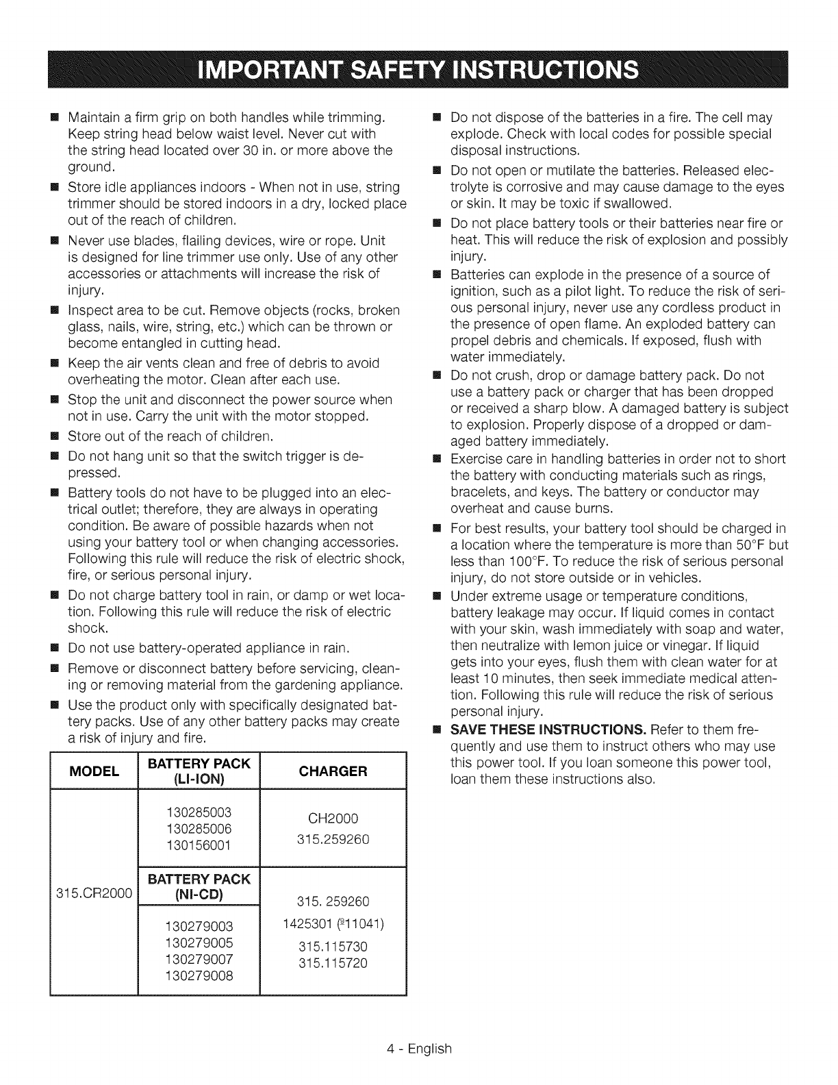 User Manual: Craftsman 315CR2000 315CR2000 CRAFTSMAN TRIMMER - Manuals and Guides View the owners manual for your CRAFTSMAN TRIMMER #315CR2000. Home:Lawn & Garden Parts:Craftsman Parts:Craftsman TRIMMER Manual