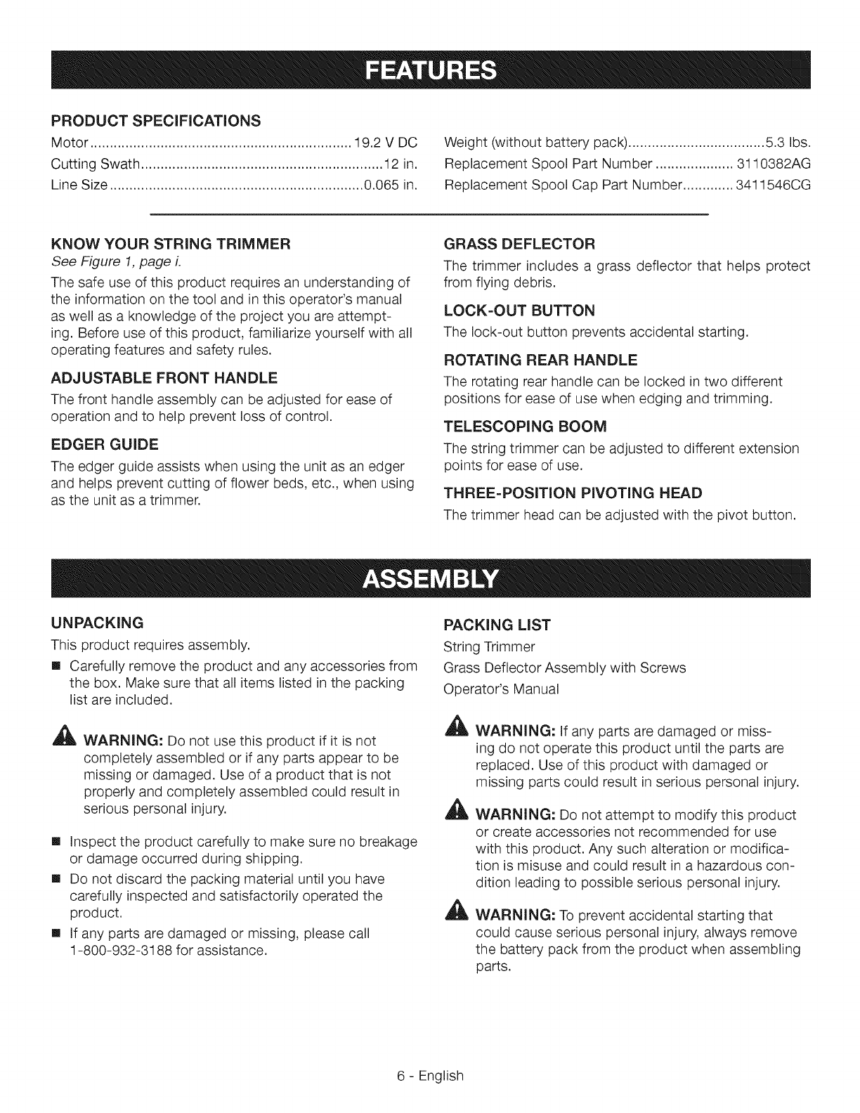 Craftsman 315CR2000 1009779L User Manual TRIMMER Manuals And Guides