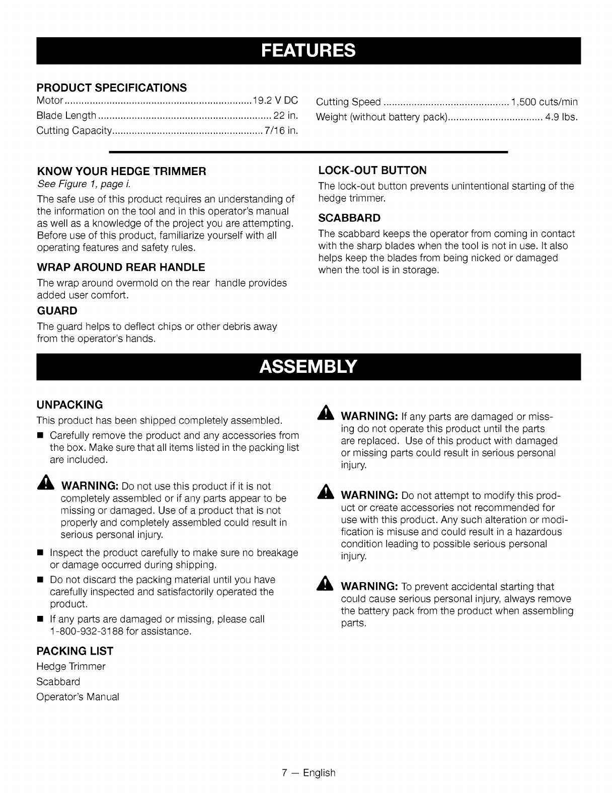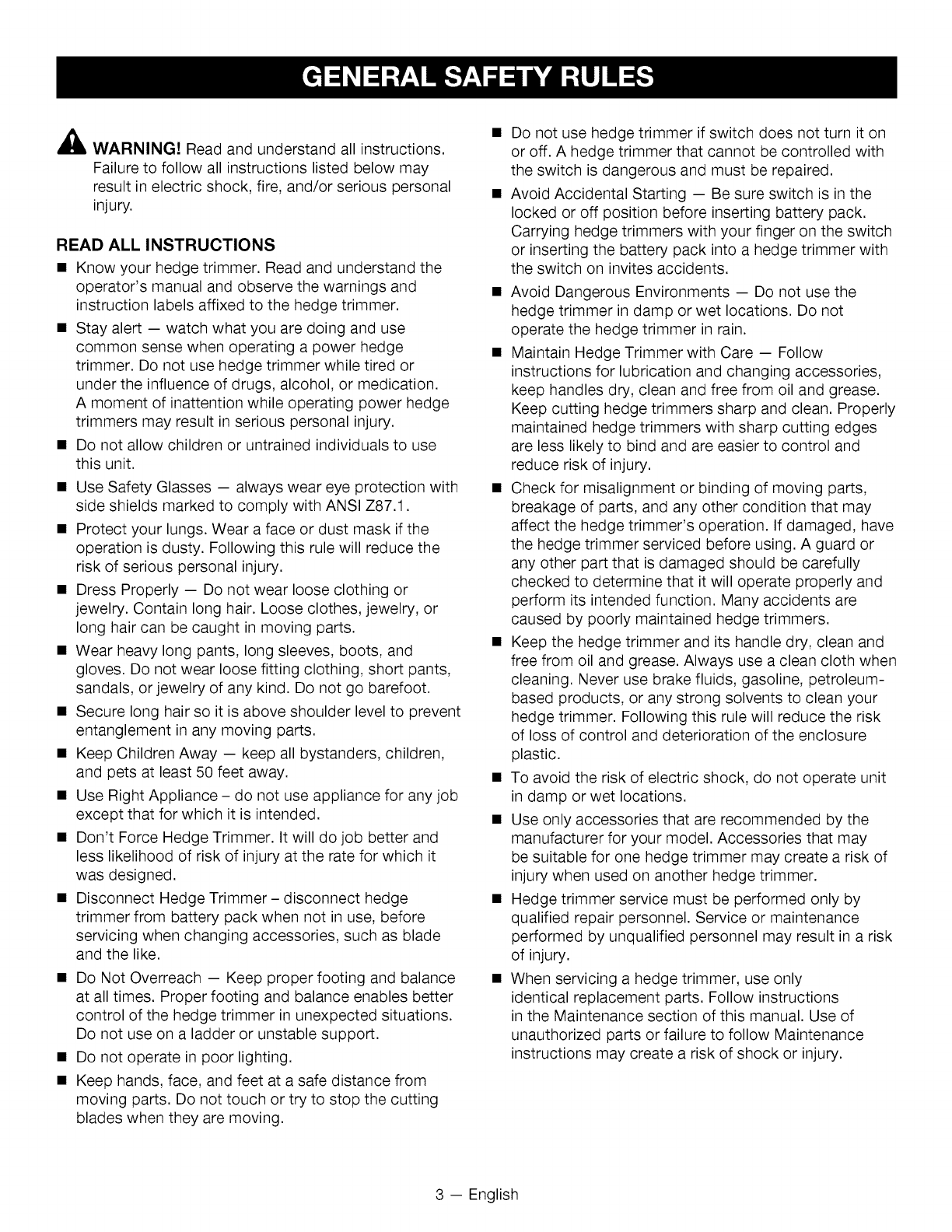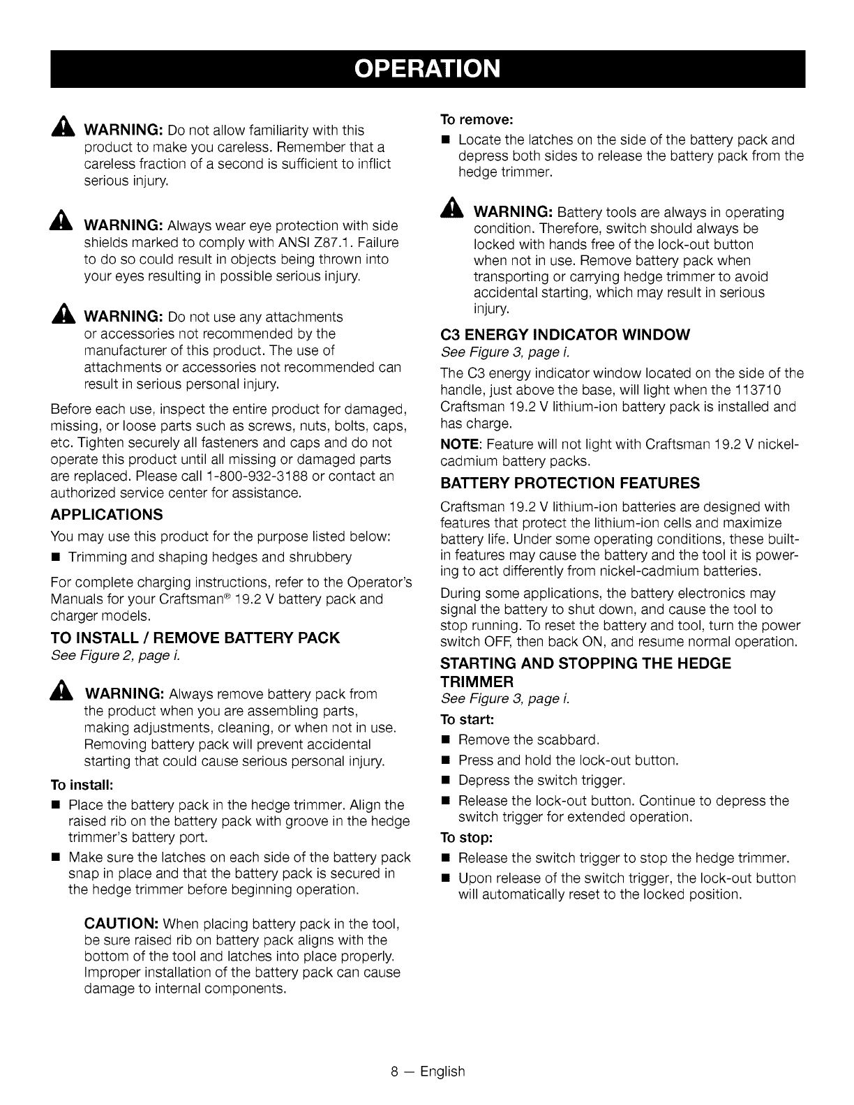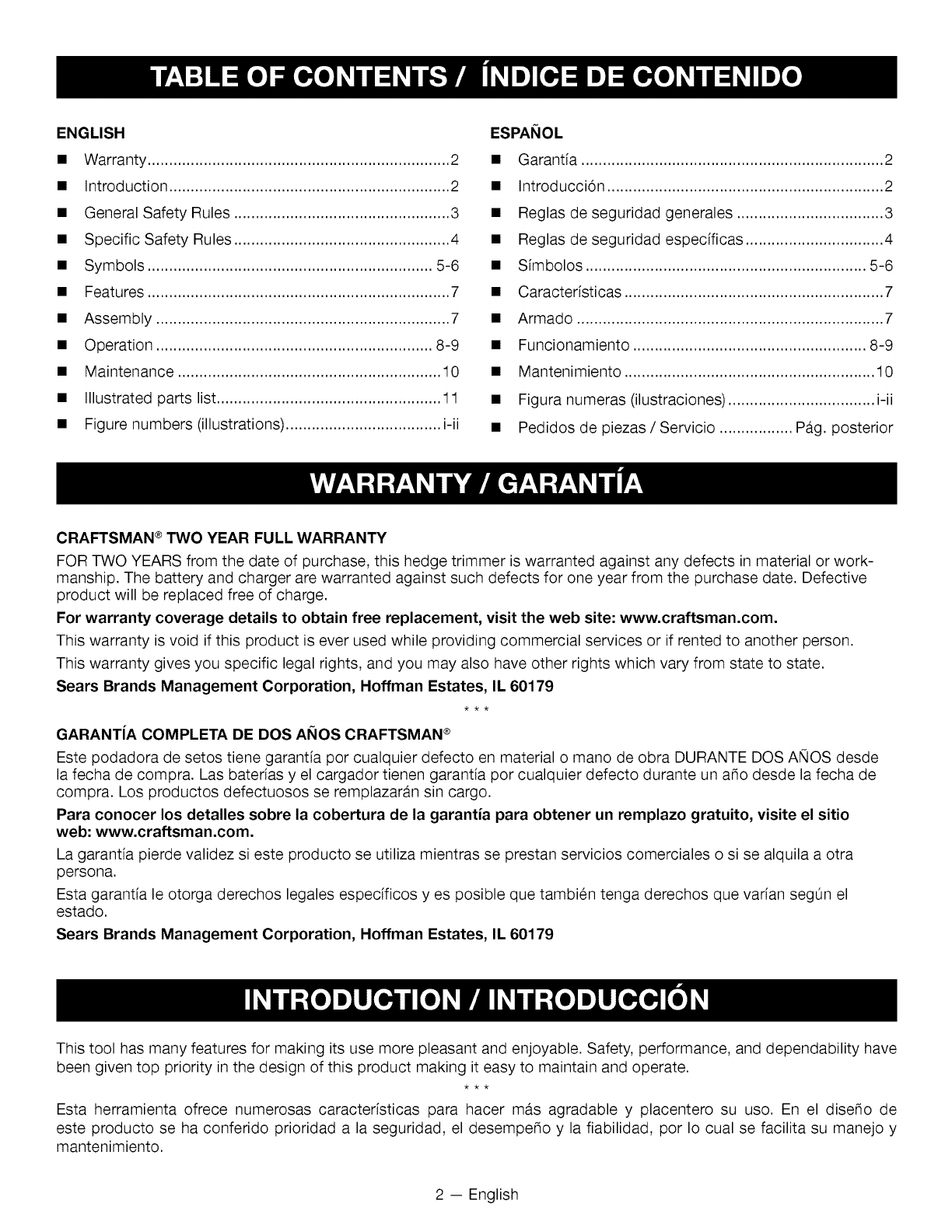 Craftsman 315CR2600 1009717L User Manual HEDGE TRIMMER Manuals And Guides
