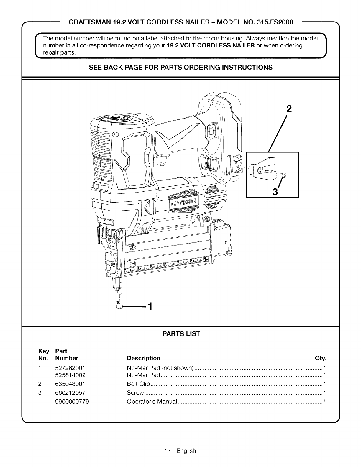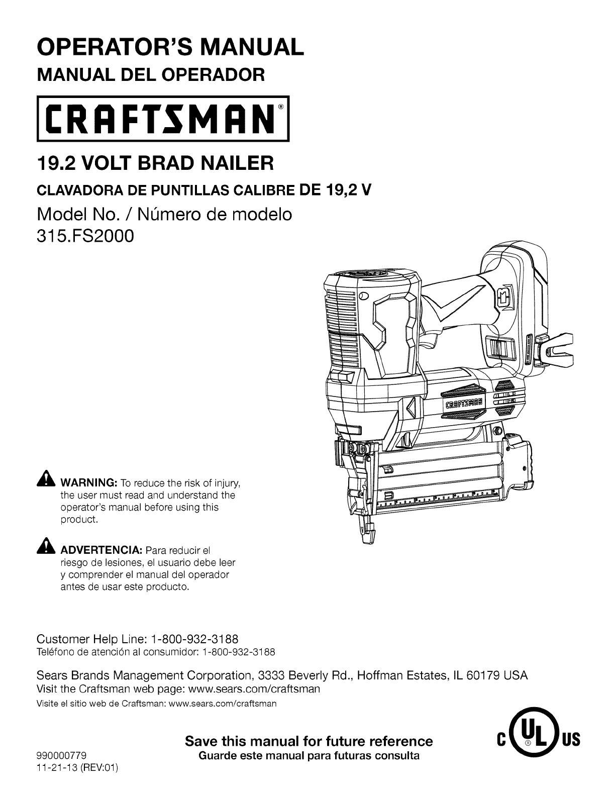 User Manual: Craftsman 315FS2000 315FS2000 CRAFTSMAN NAILER - Manuals and Guides View the owners manual for your CRAFTSMAN NAILER #315FS2000. Home:Tool Parts:Craftsman Parts:Craftsman NAILER Manual