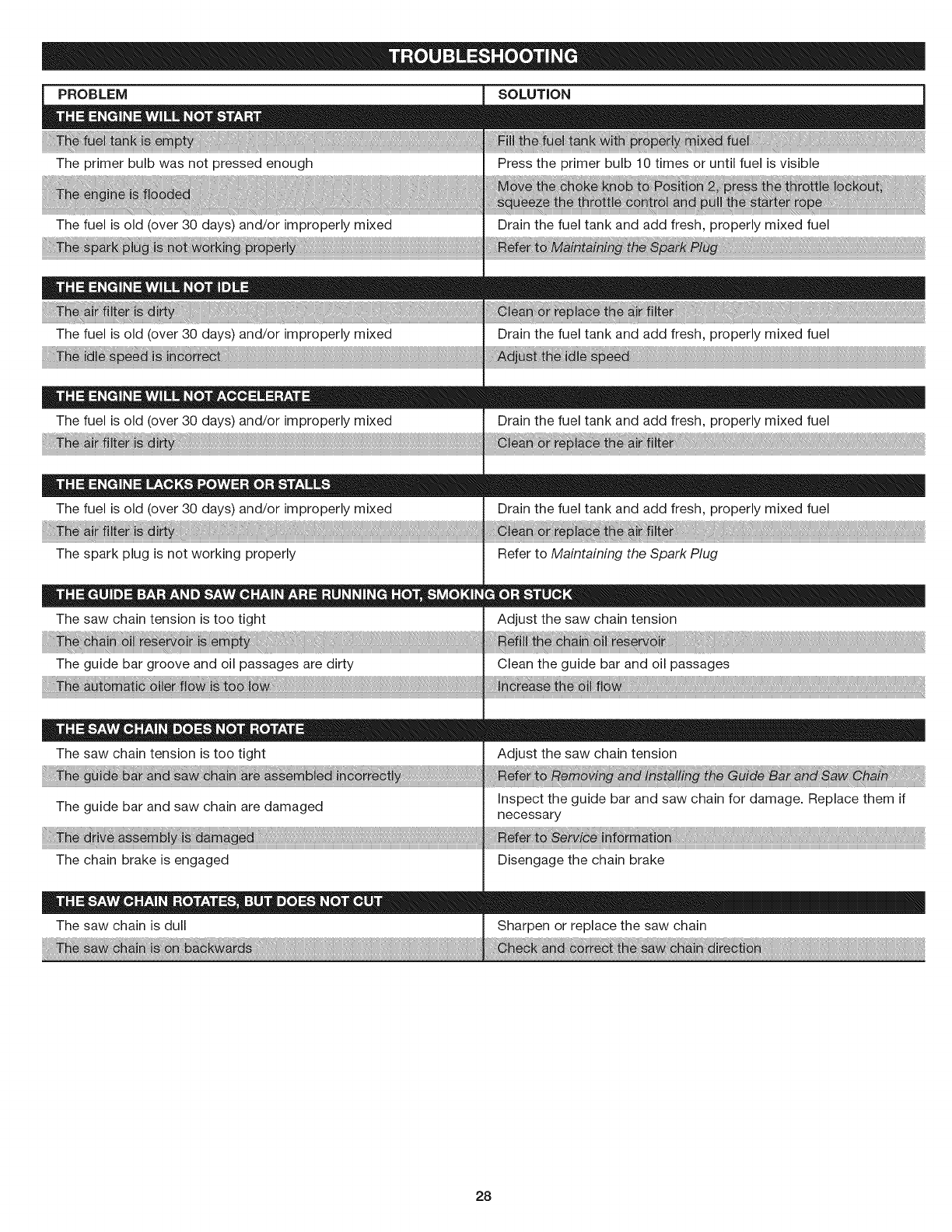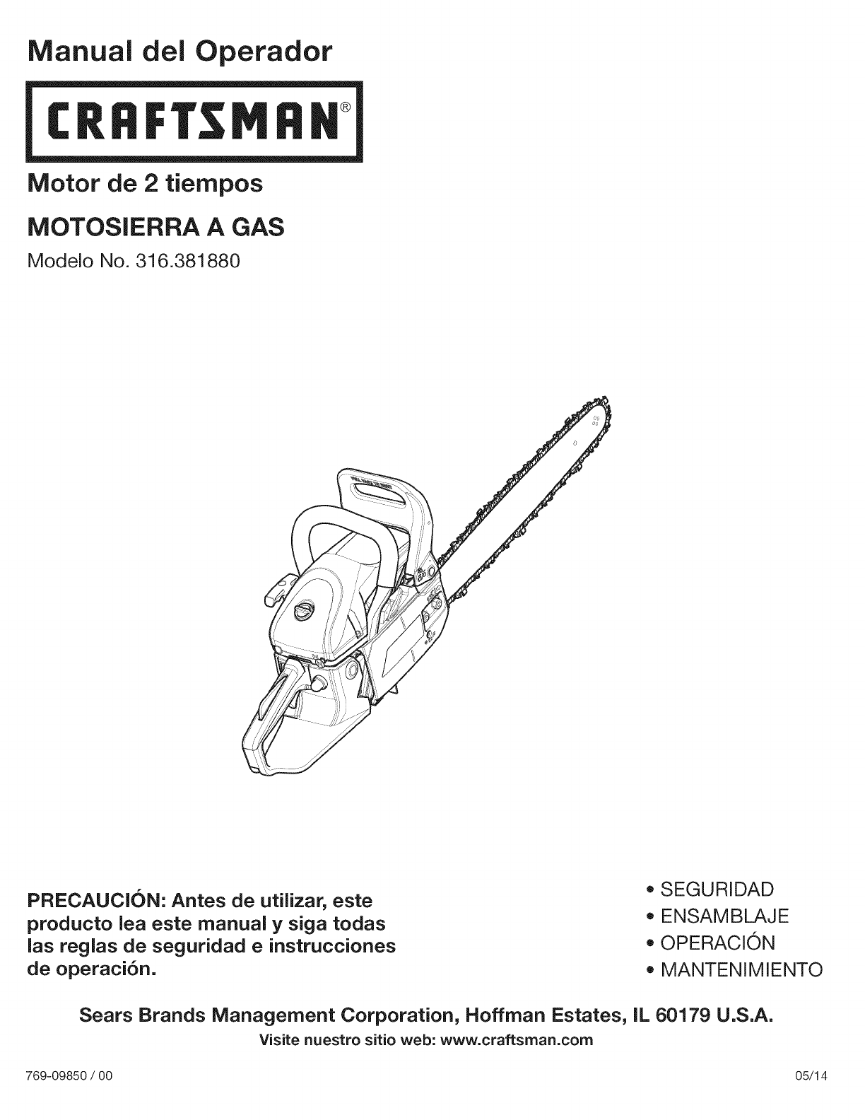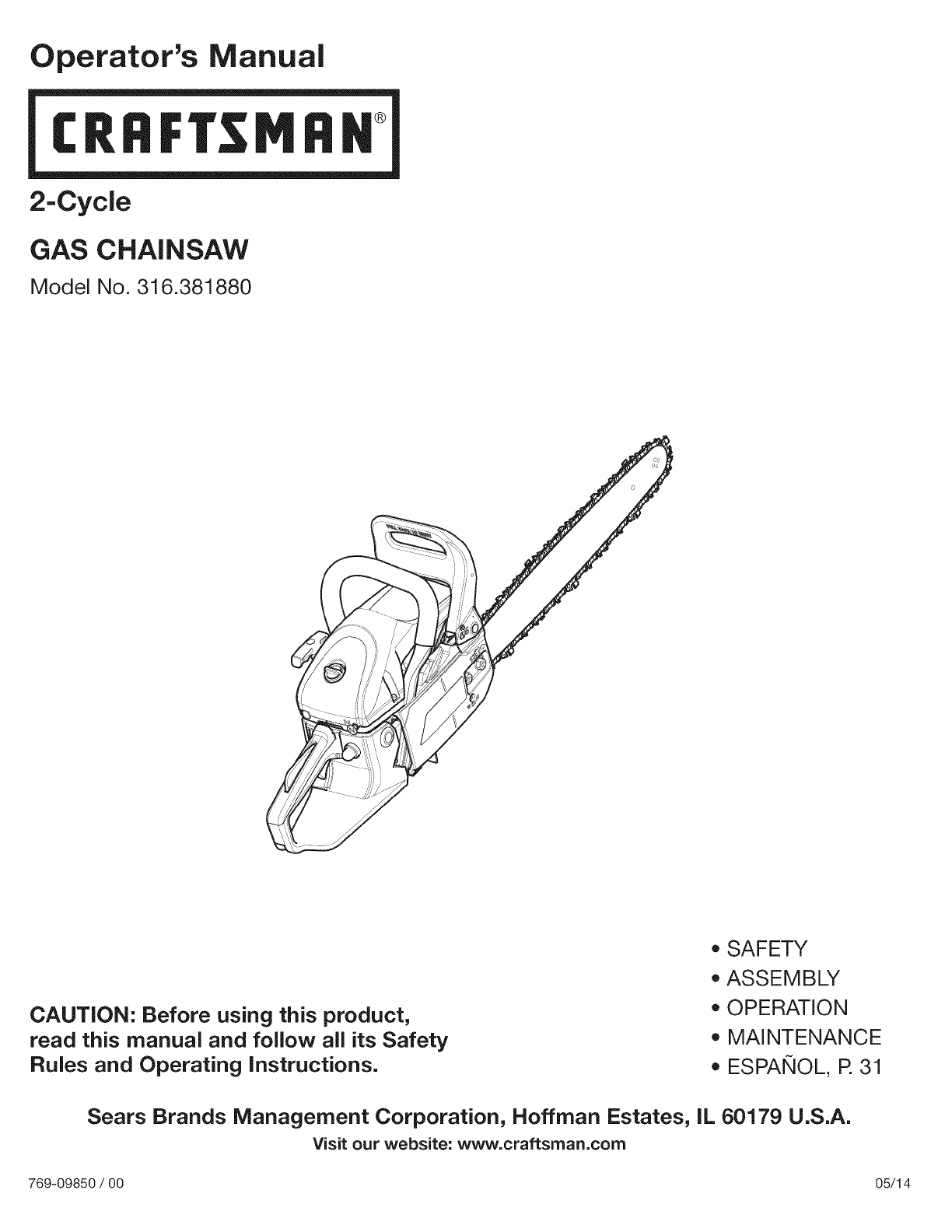User Manual: Craftsman 316381880 316381880 CRAFTSMAN CHAIN SAW - Manuals and Guides View the owners manual for your CRAFTSMAN CHAIN SAW #316381880. Home:Lawn & Garden Parts:Craftsman Parts:Craftsman CHAIN SAW Manual