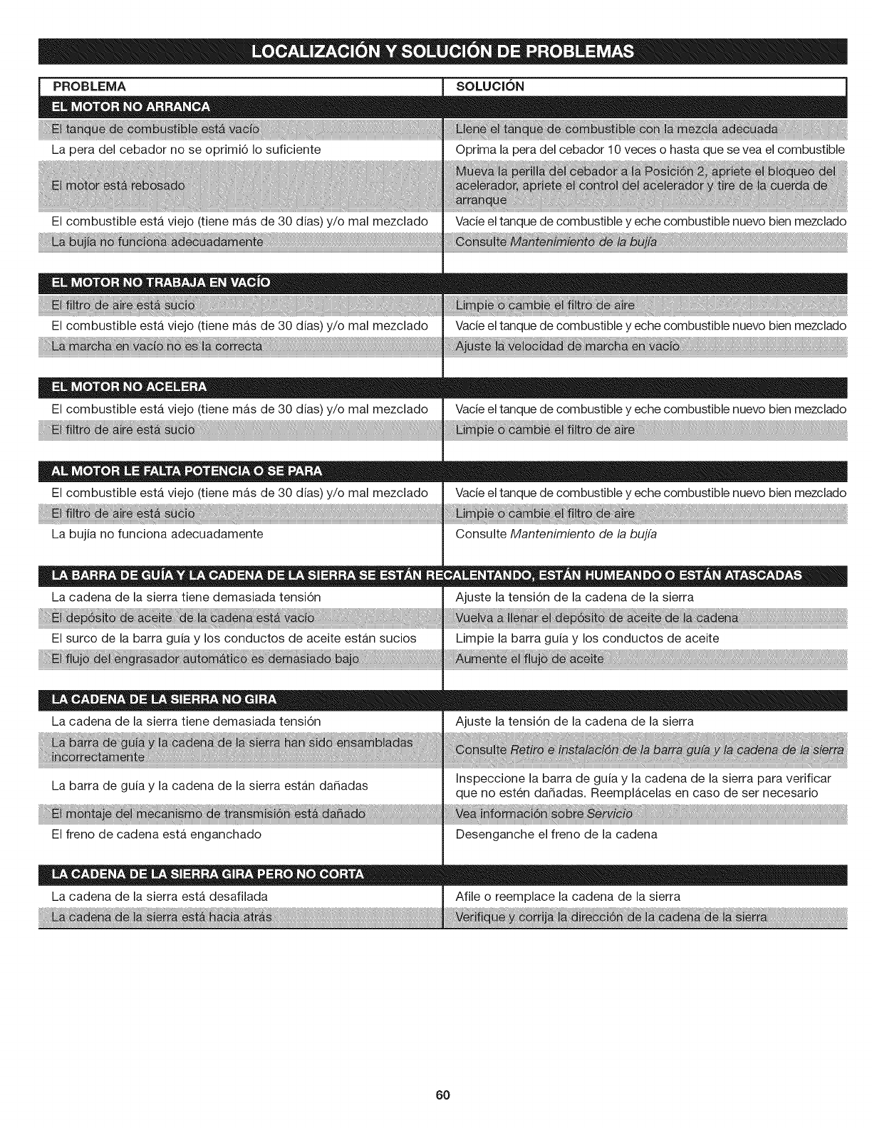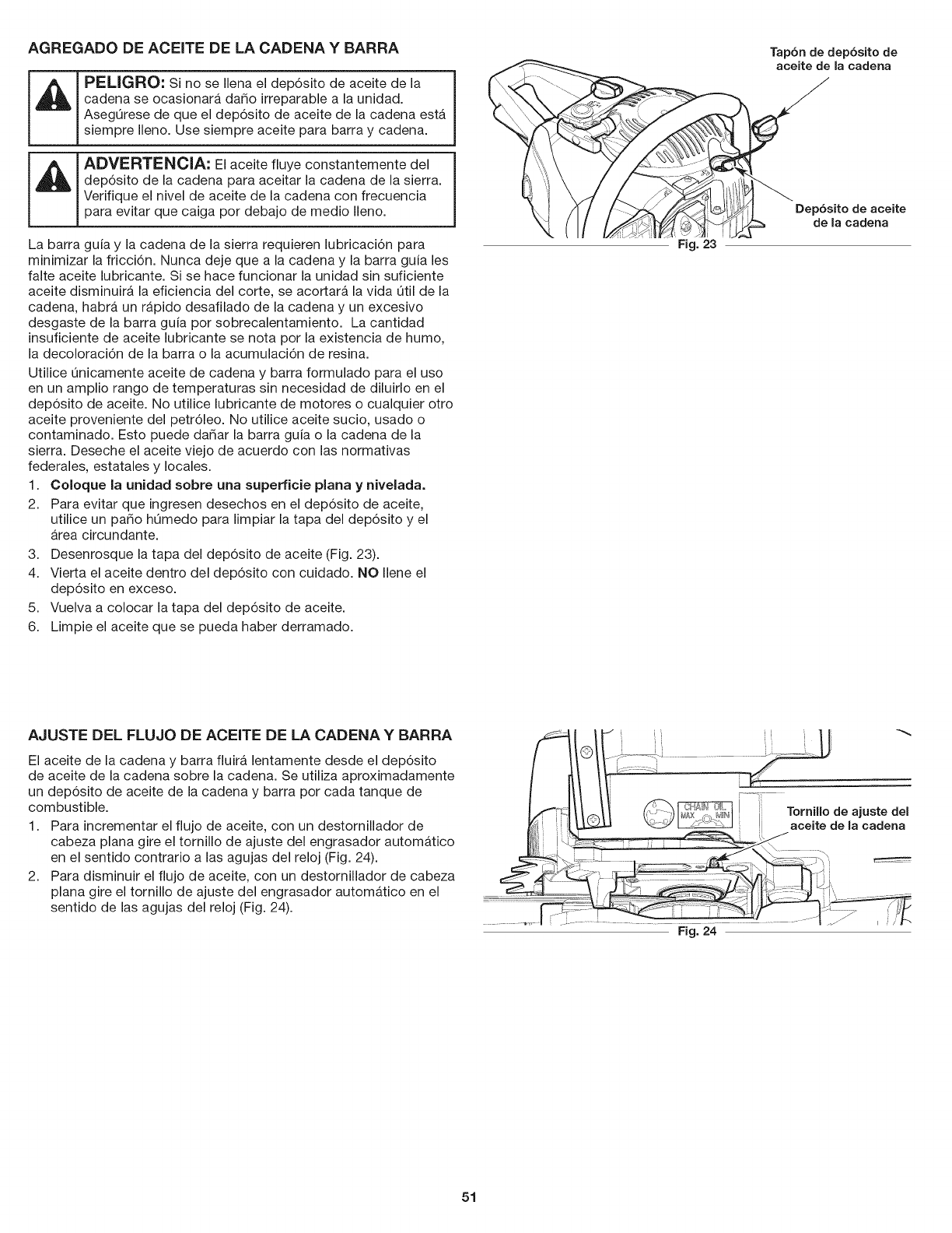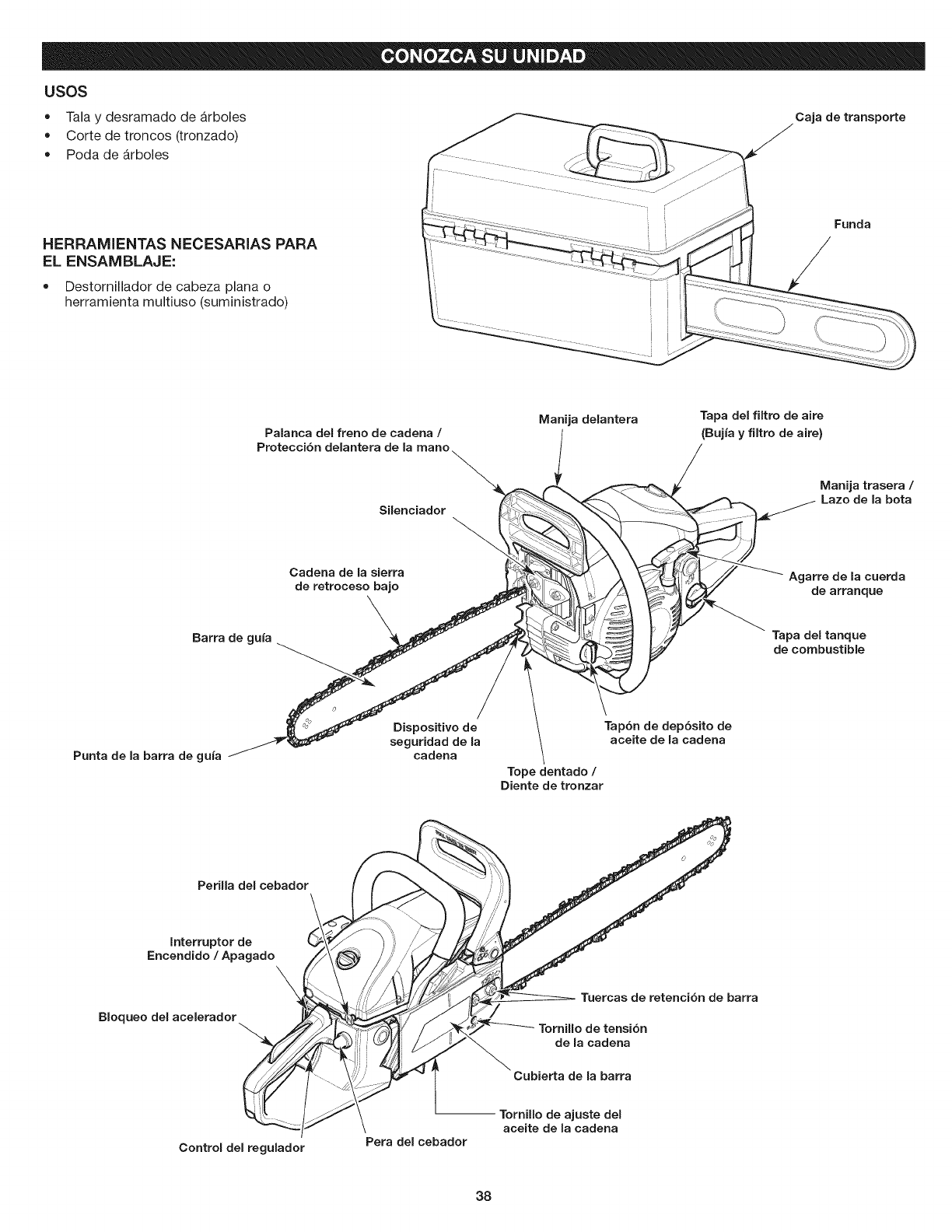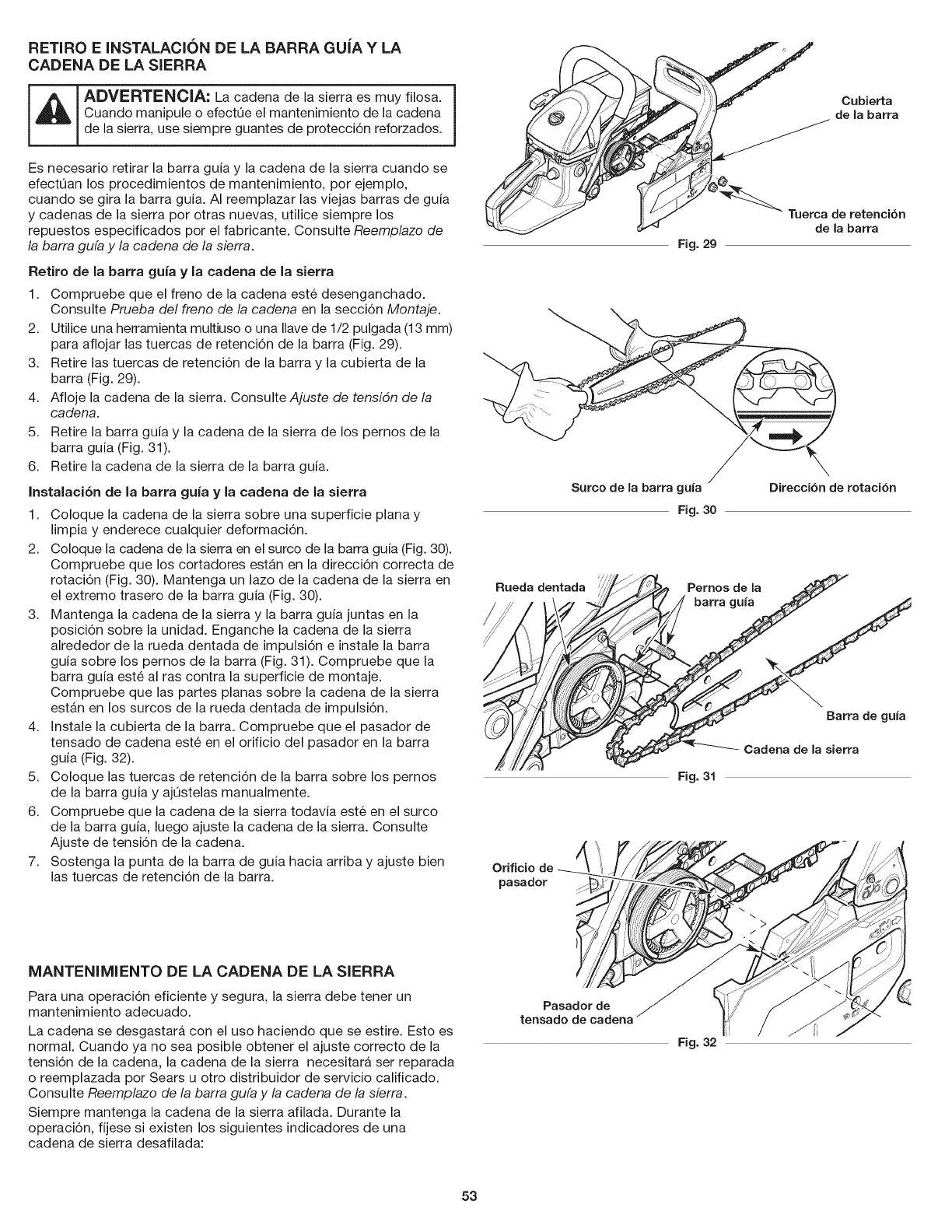 La barra de guia y la cadena de la sierra estan da_adas