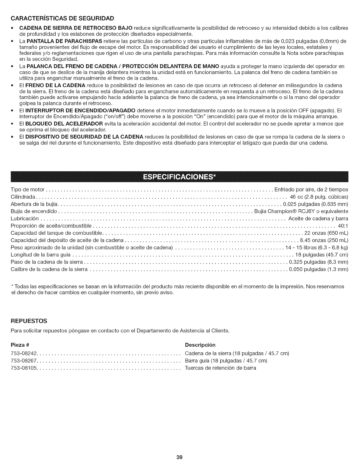 Felicitaciones pot haber hecho una compra inteligente. Su nuevo producto Craftsman@ fue disedado y fabricado con vistas a una operaci6n