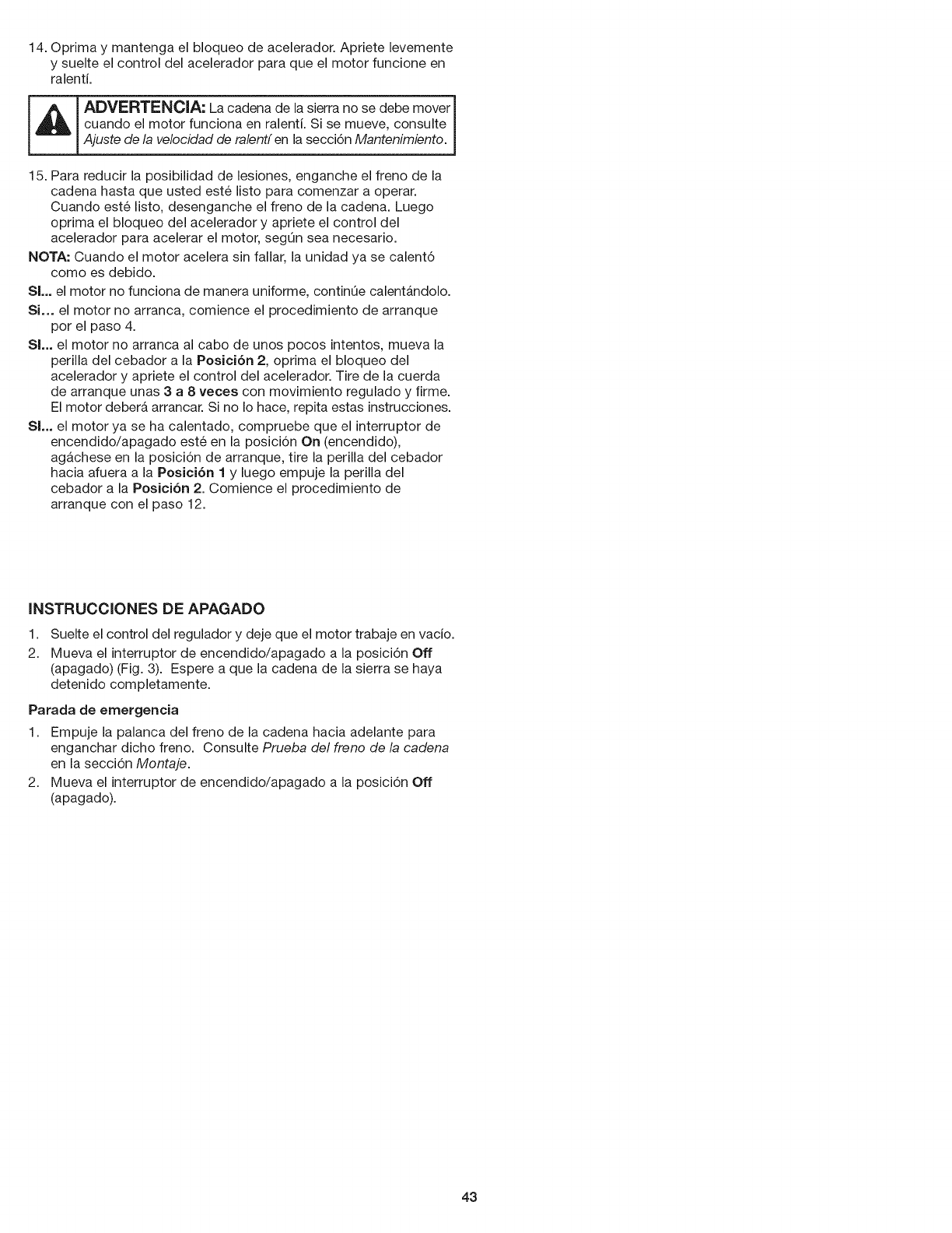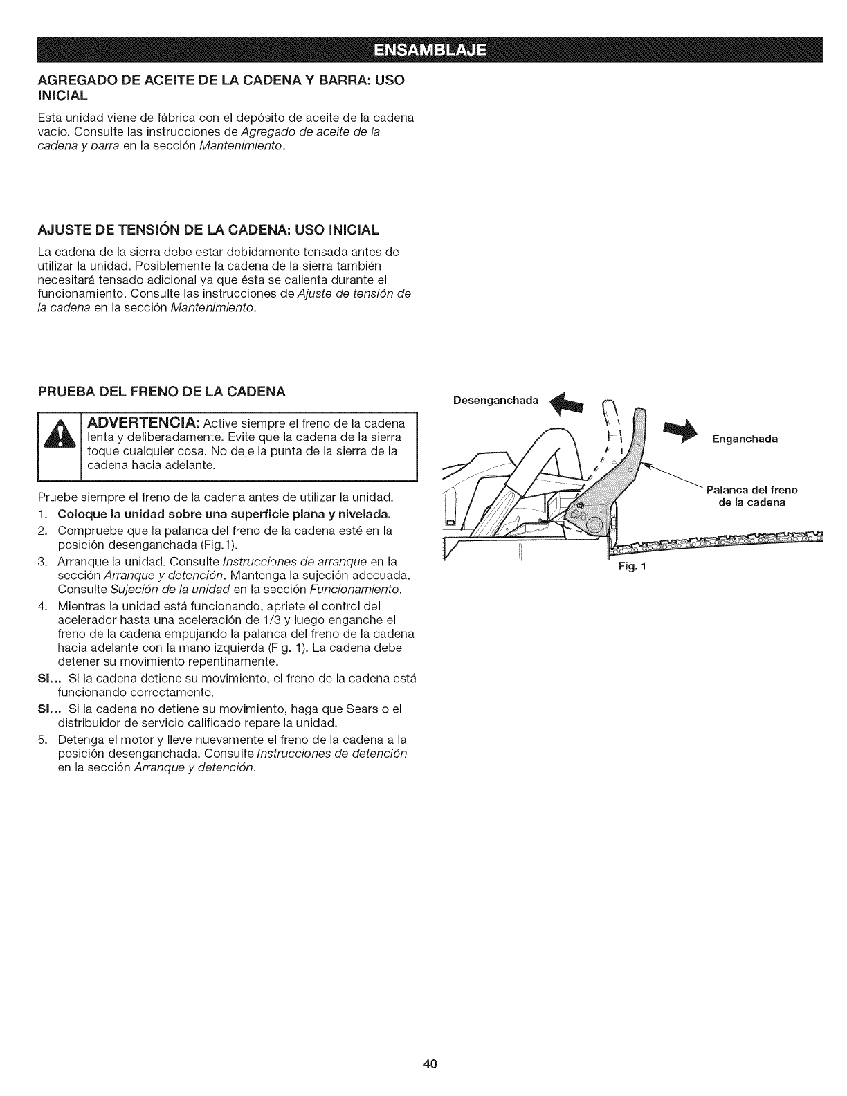 Desenganche el freno de la cadena