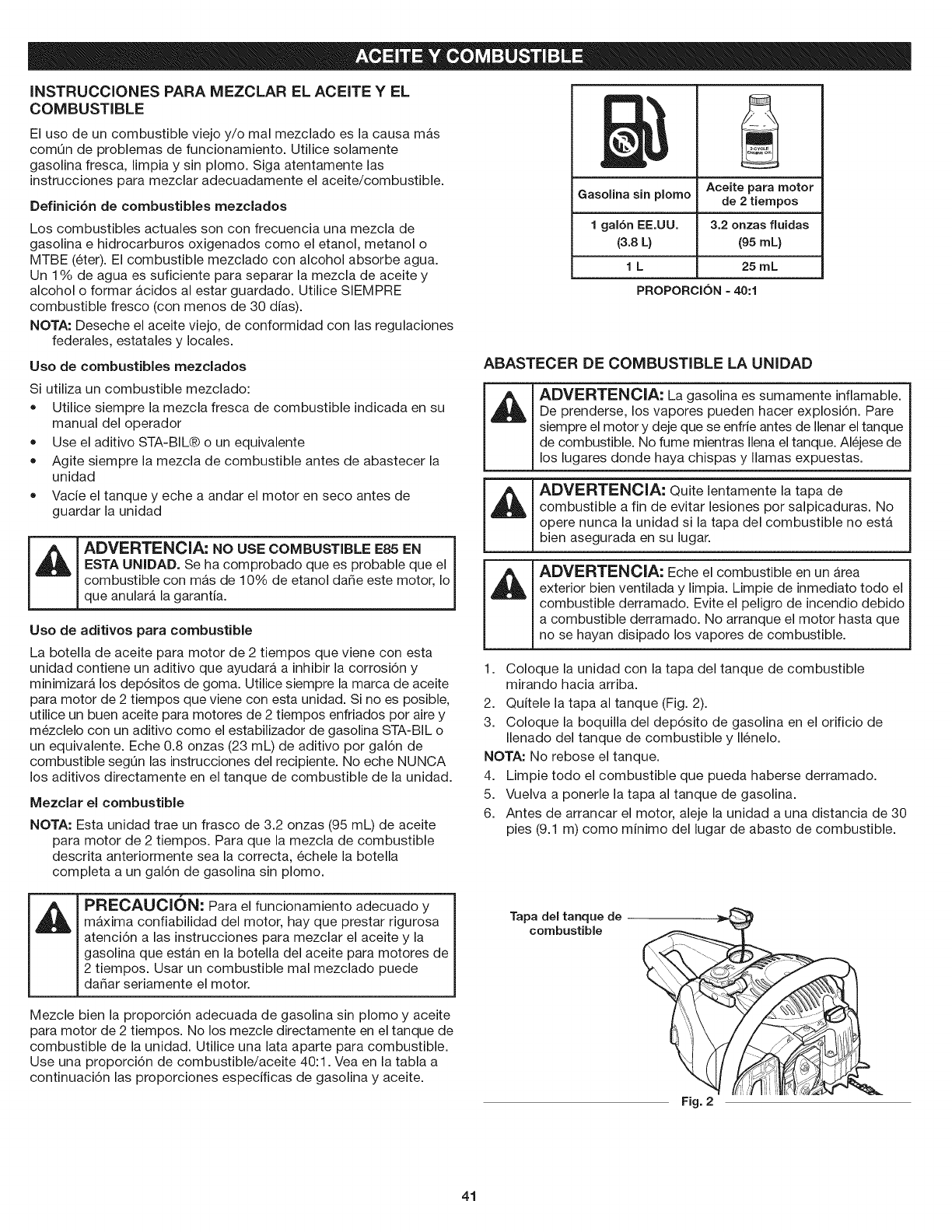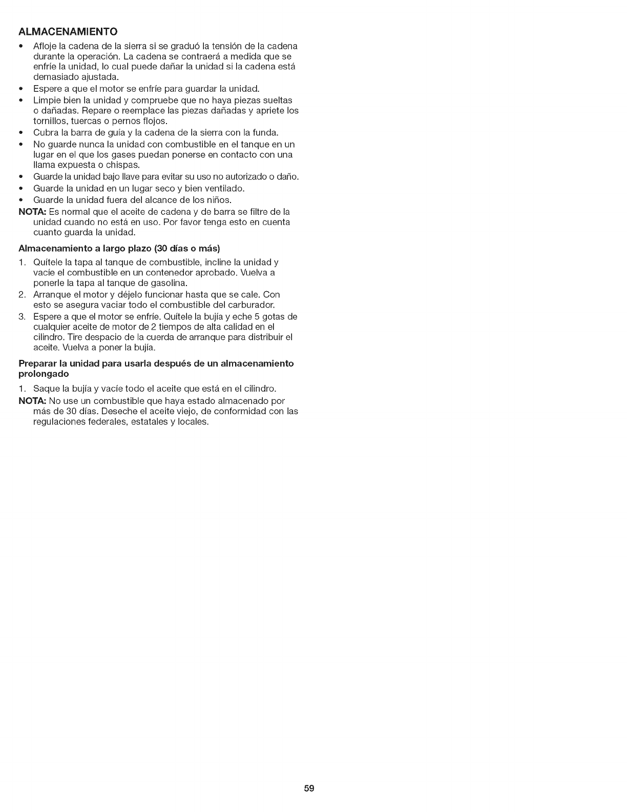 NOTA: No use un combustible que haya estado almacenado por