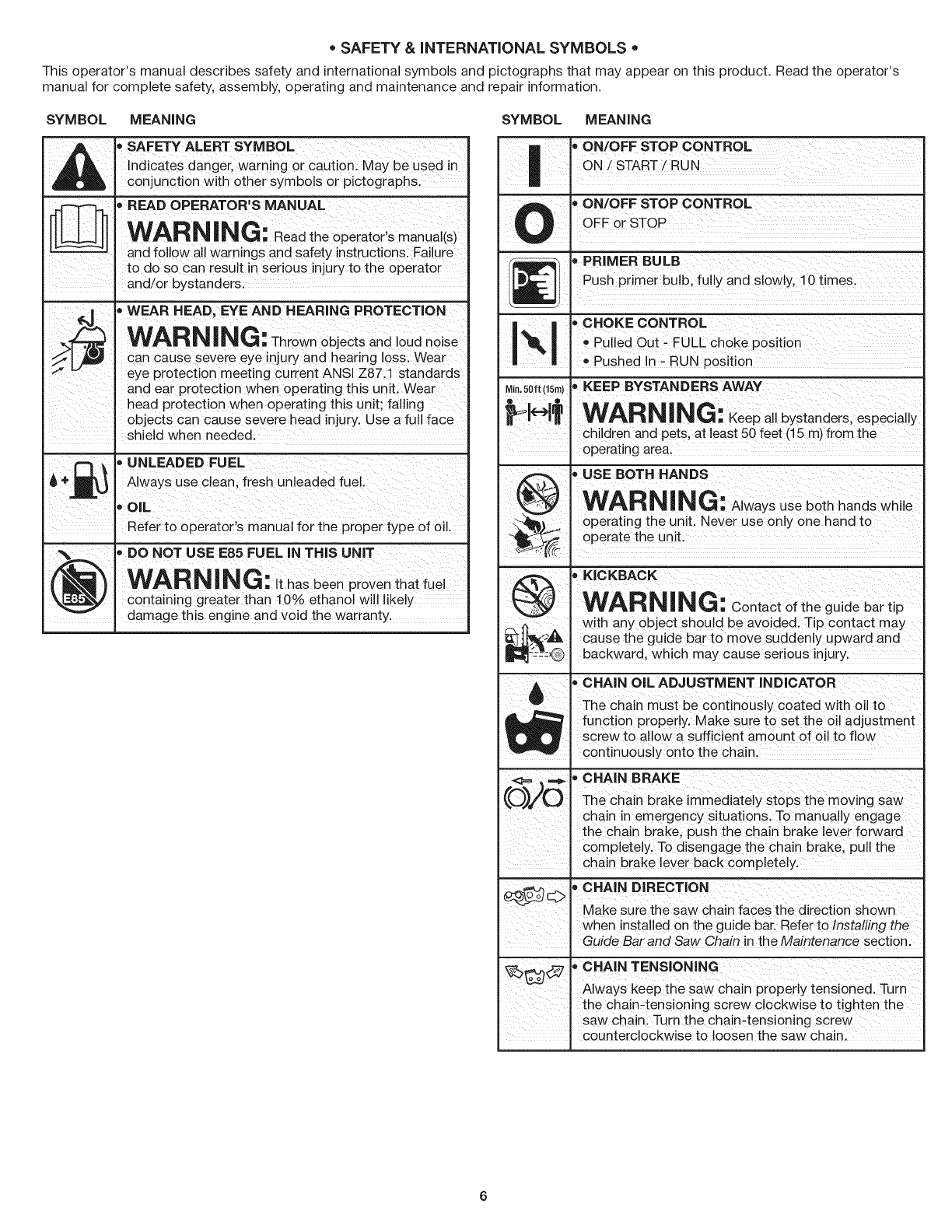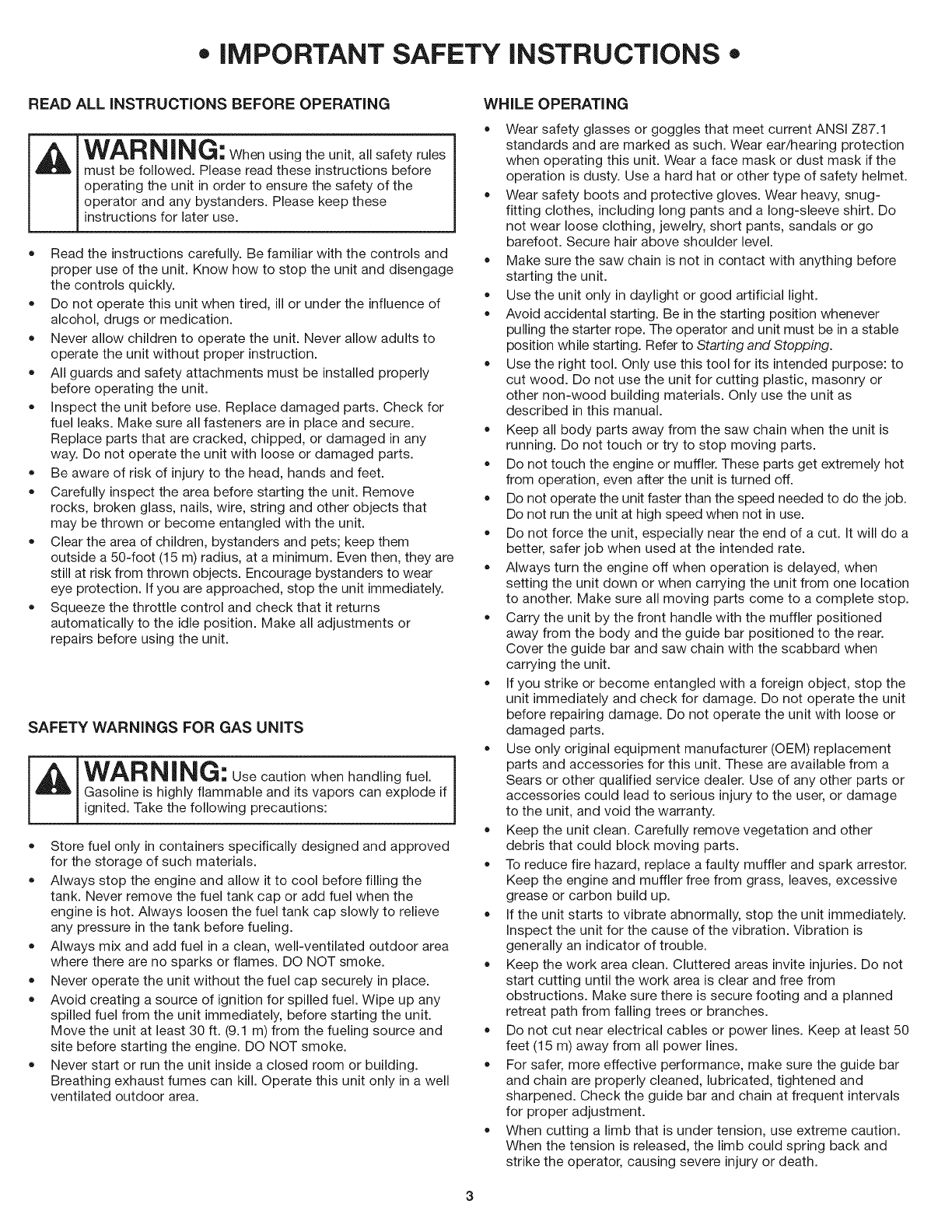 Craftsman 316381880 User Manual CHAIN SAW Manuals And Guides 1407002L