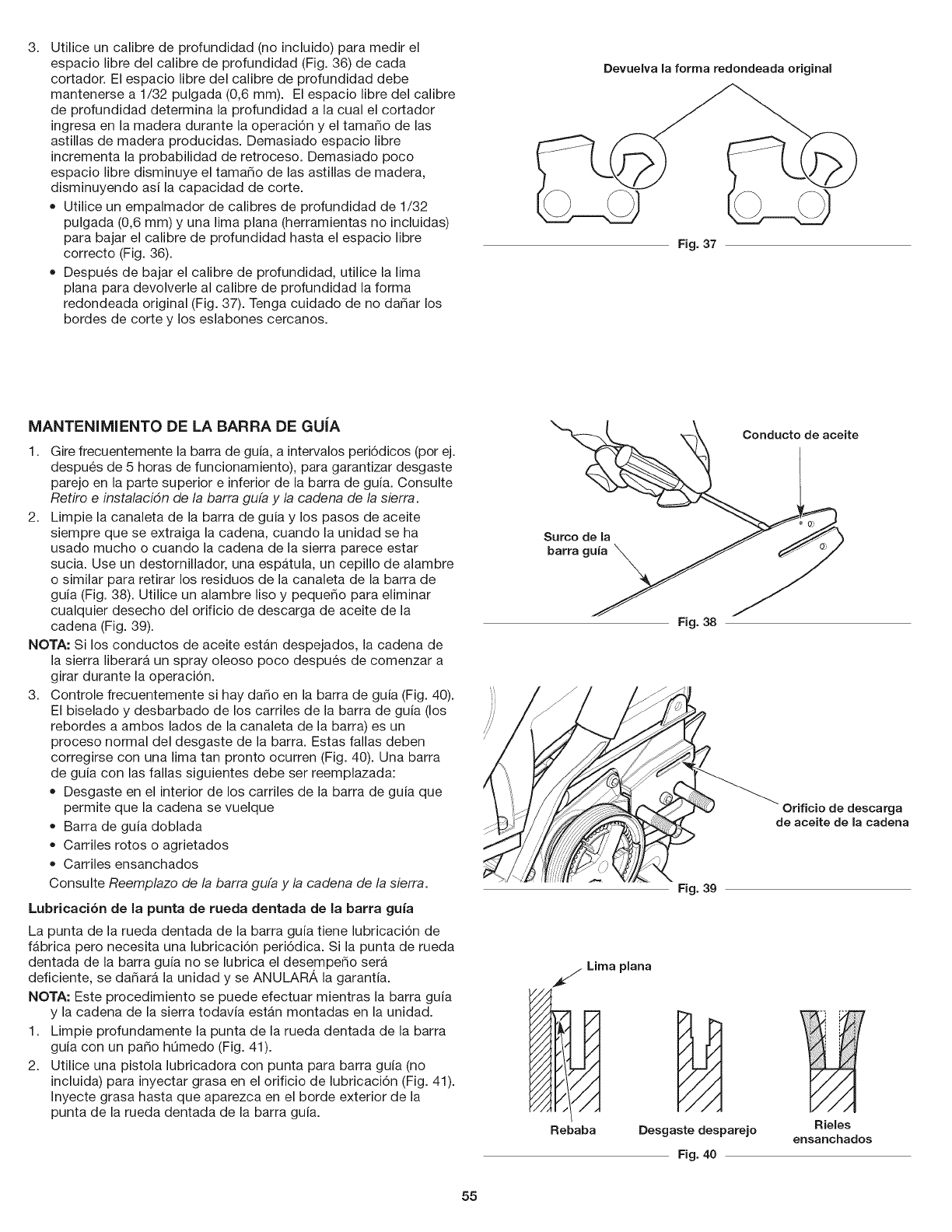 Limpie la barra guia y los conductos de aceite