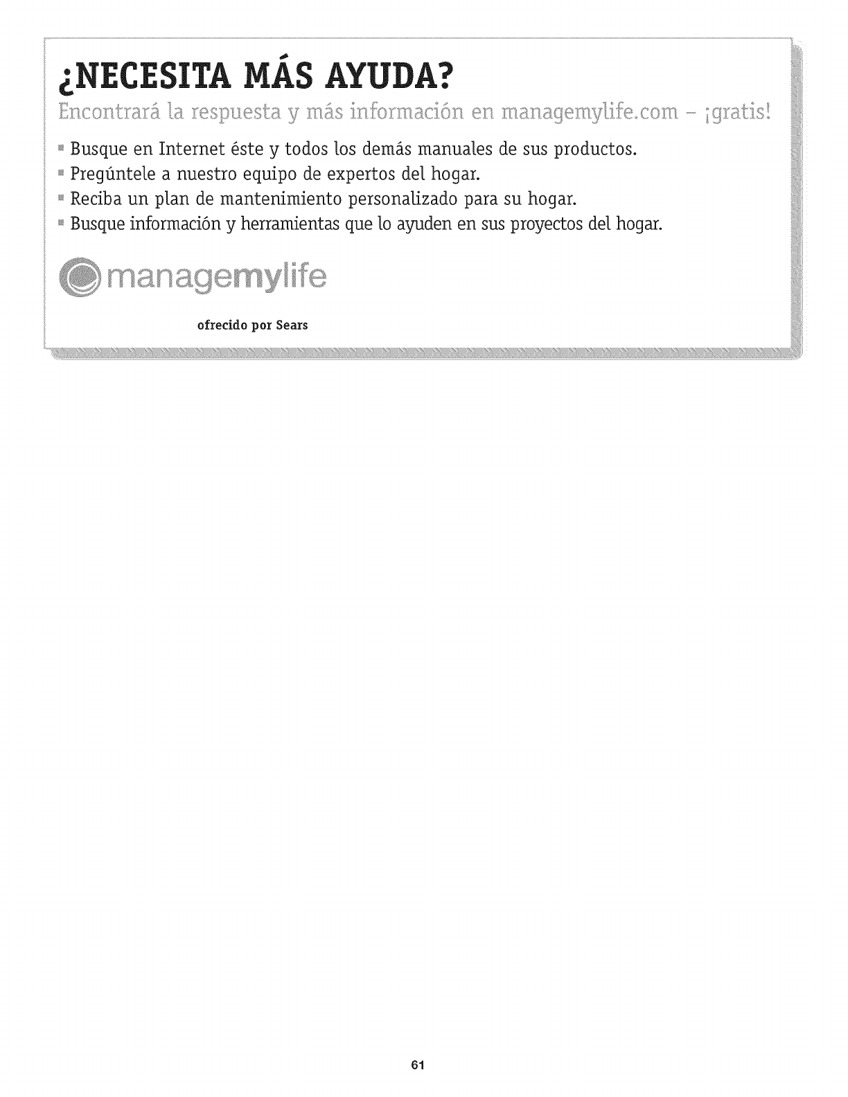 de Sears, en Estados Unidos o CanadA, Ilame al 1-800-4-MY-HOME.
