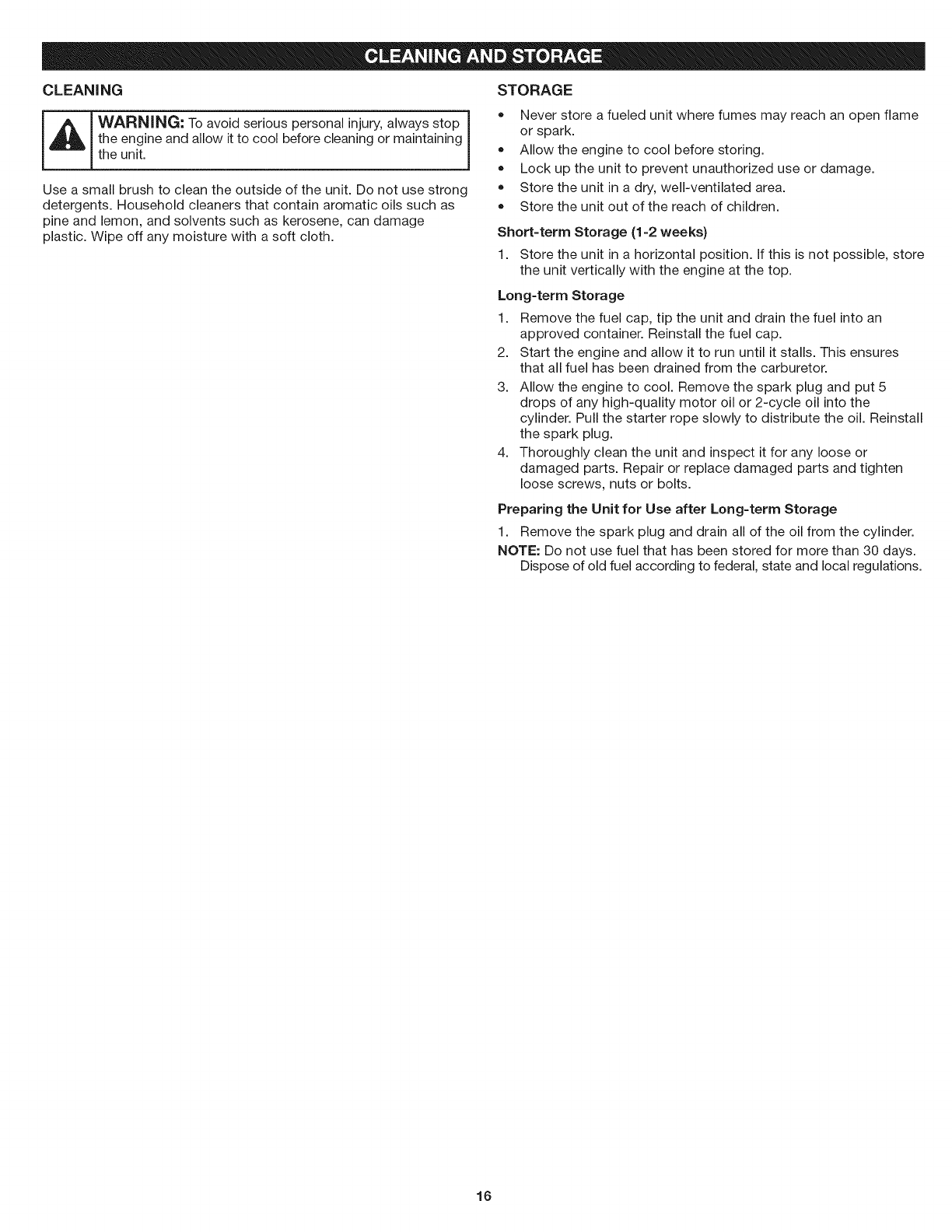 CleaningandStorage.................................. 16