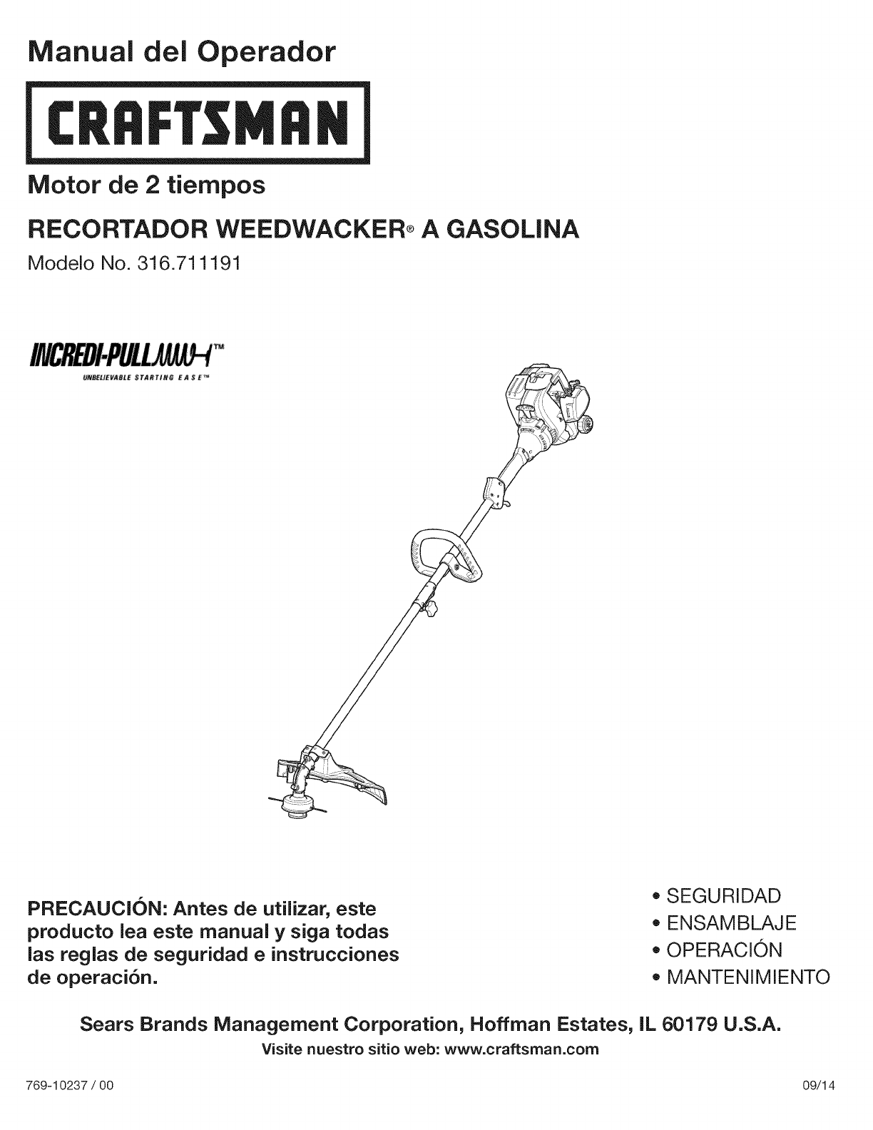 Felicitaciones pot haber hecho una compra inteligente. Su nuevo producto Craftsman® fue disedado y fabricado con vistas a una operaci6n
