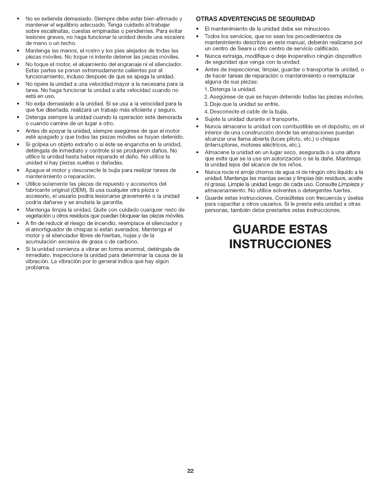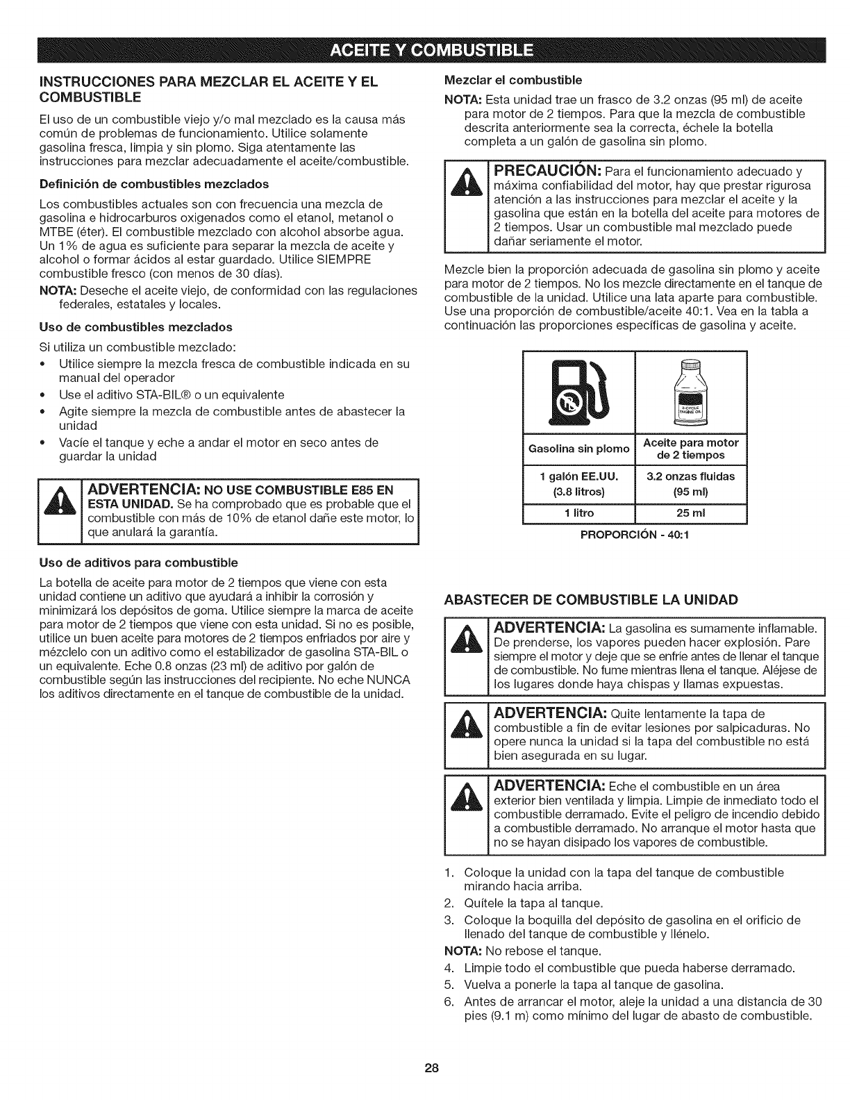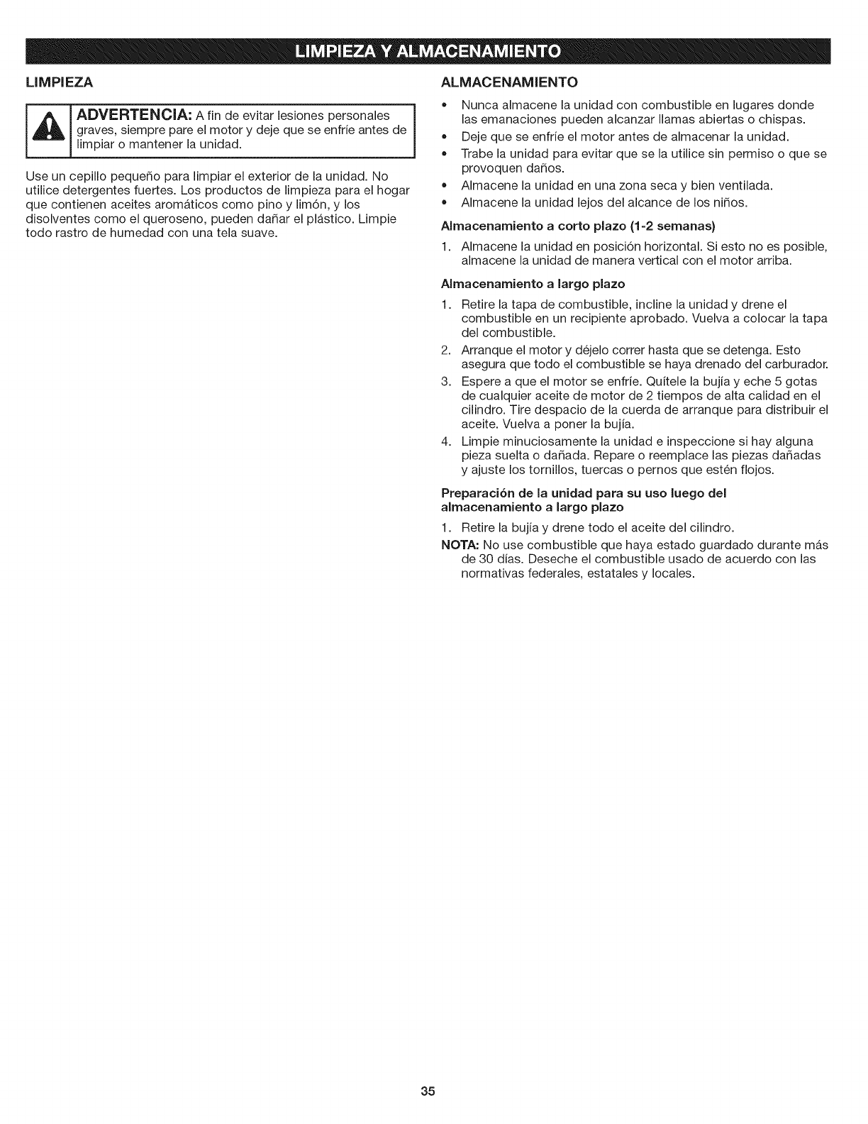 NOTA: No use combustible que haya estado guardado durante m_,s