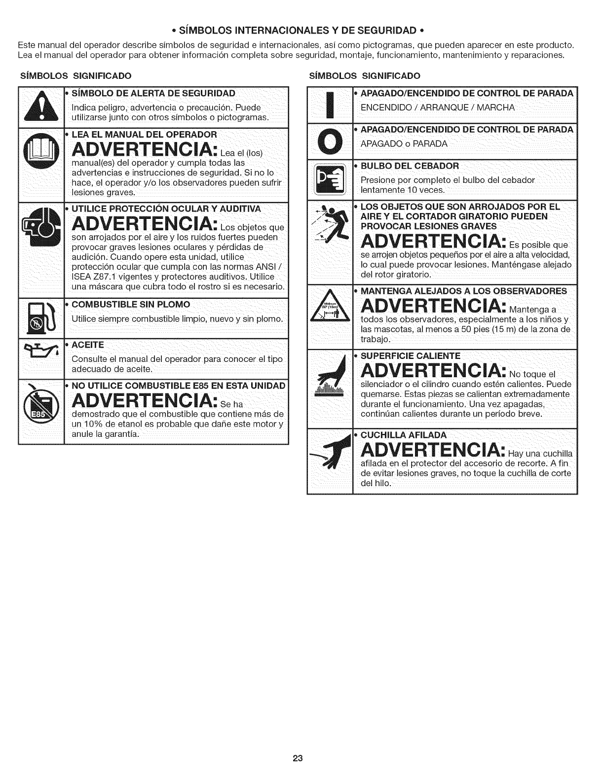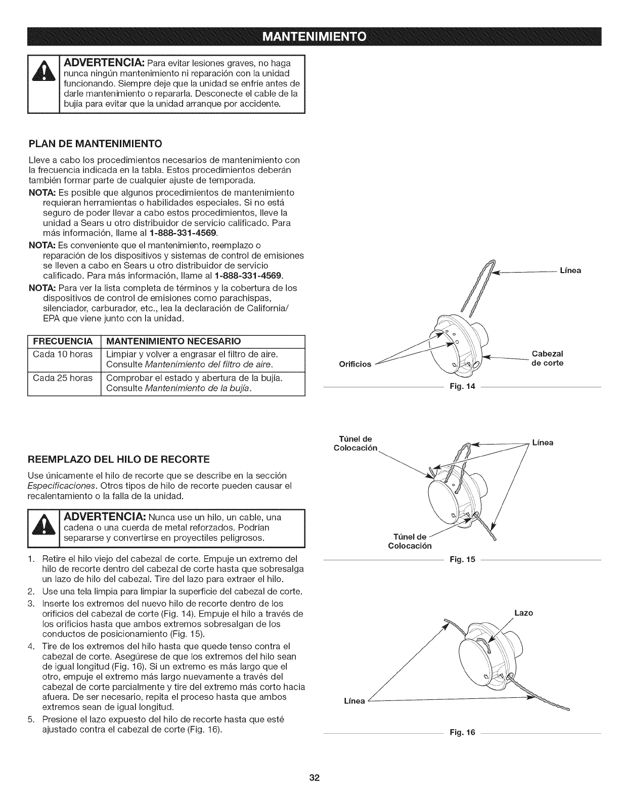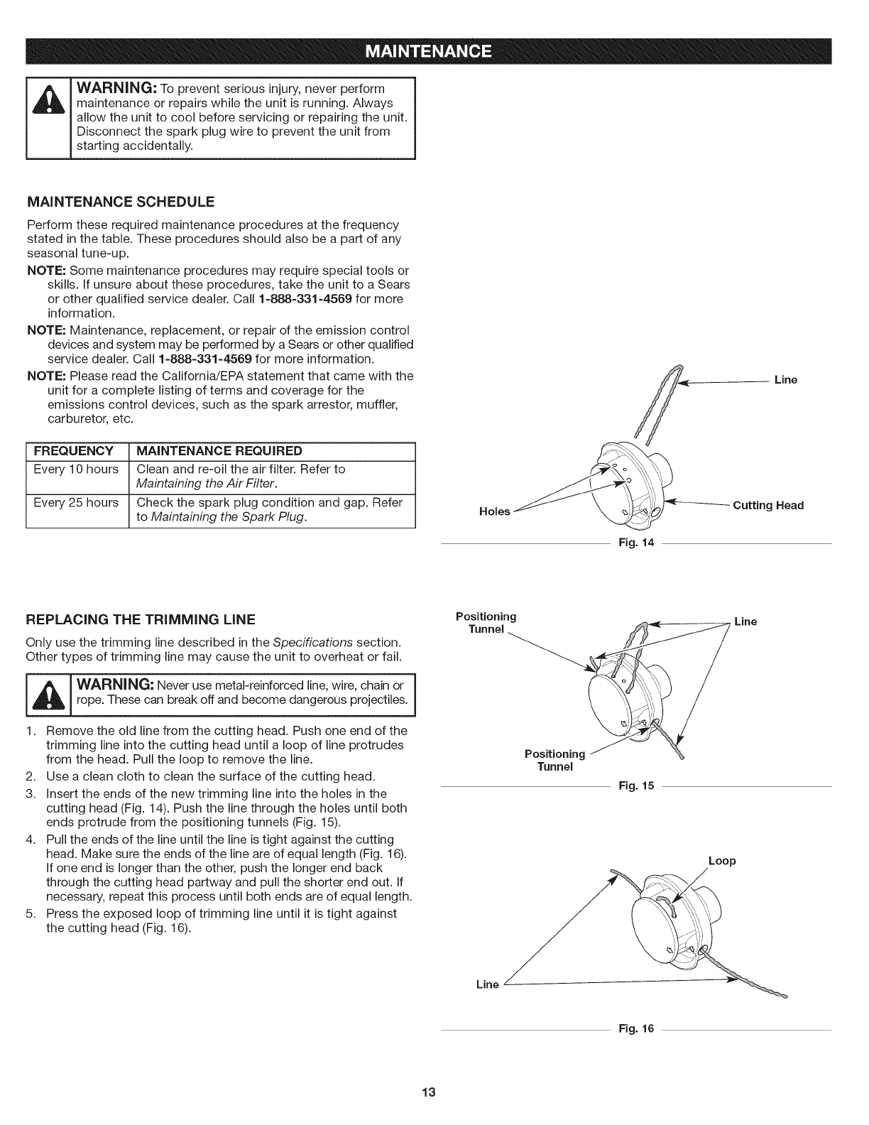 of this manual. Never use metal-reinforced line, wire, chain or