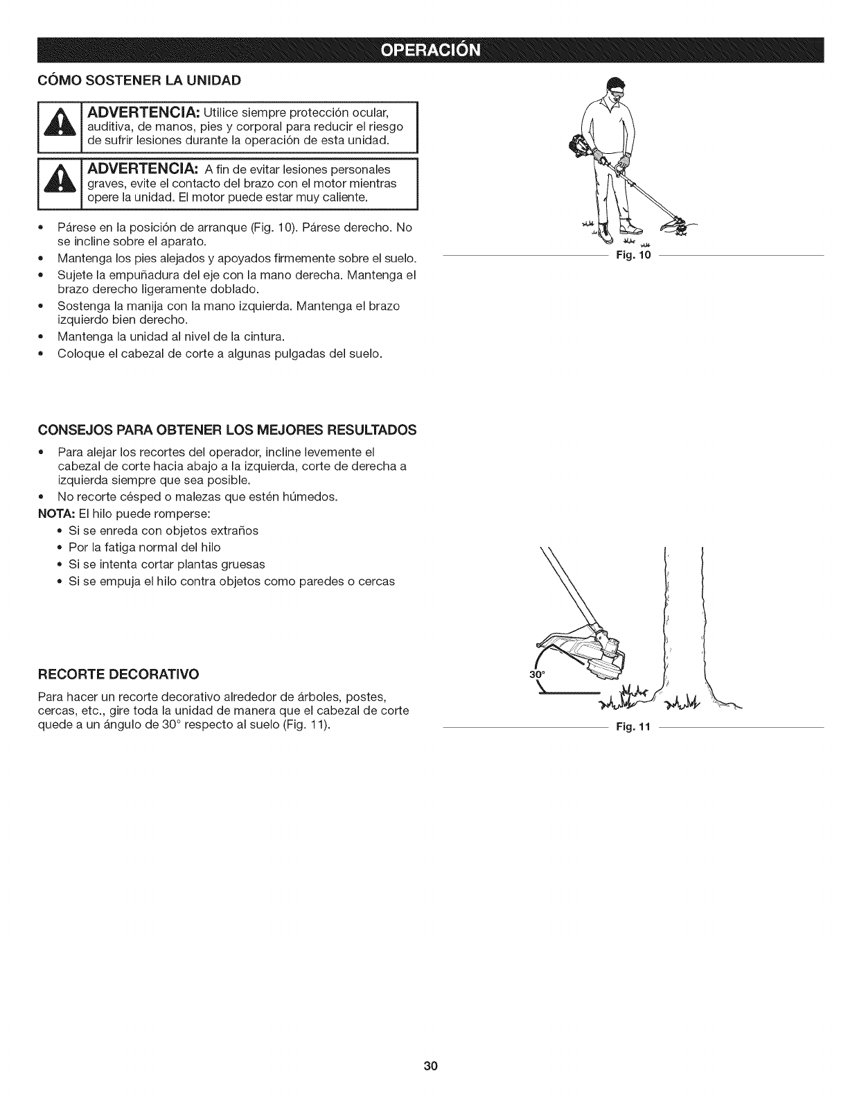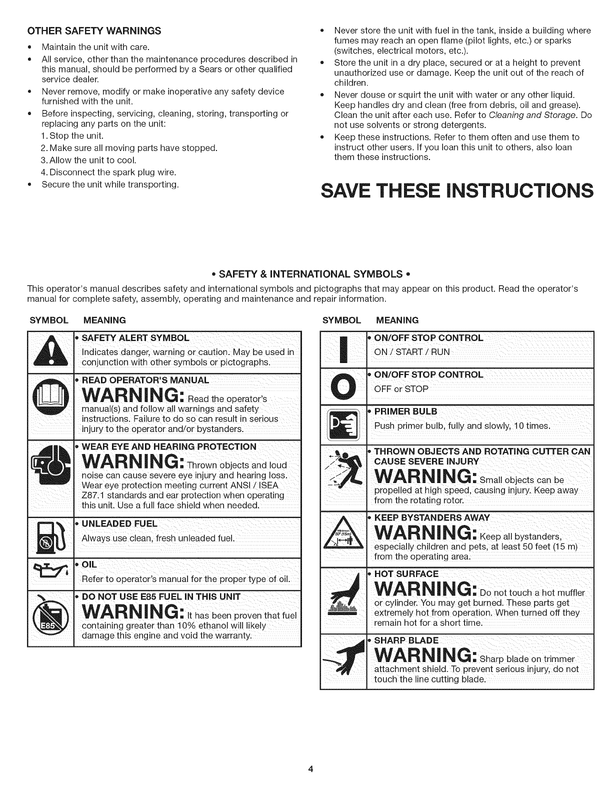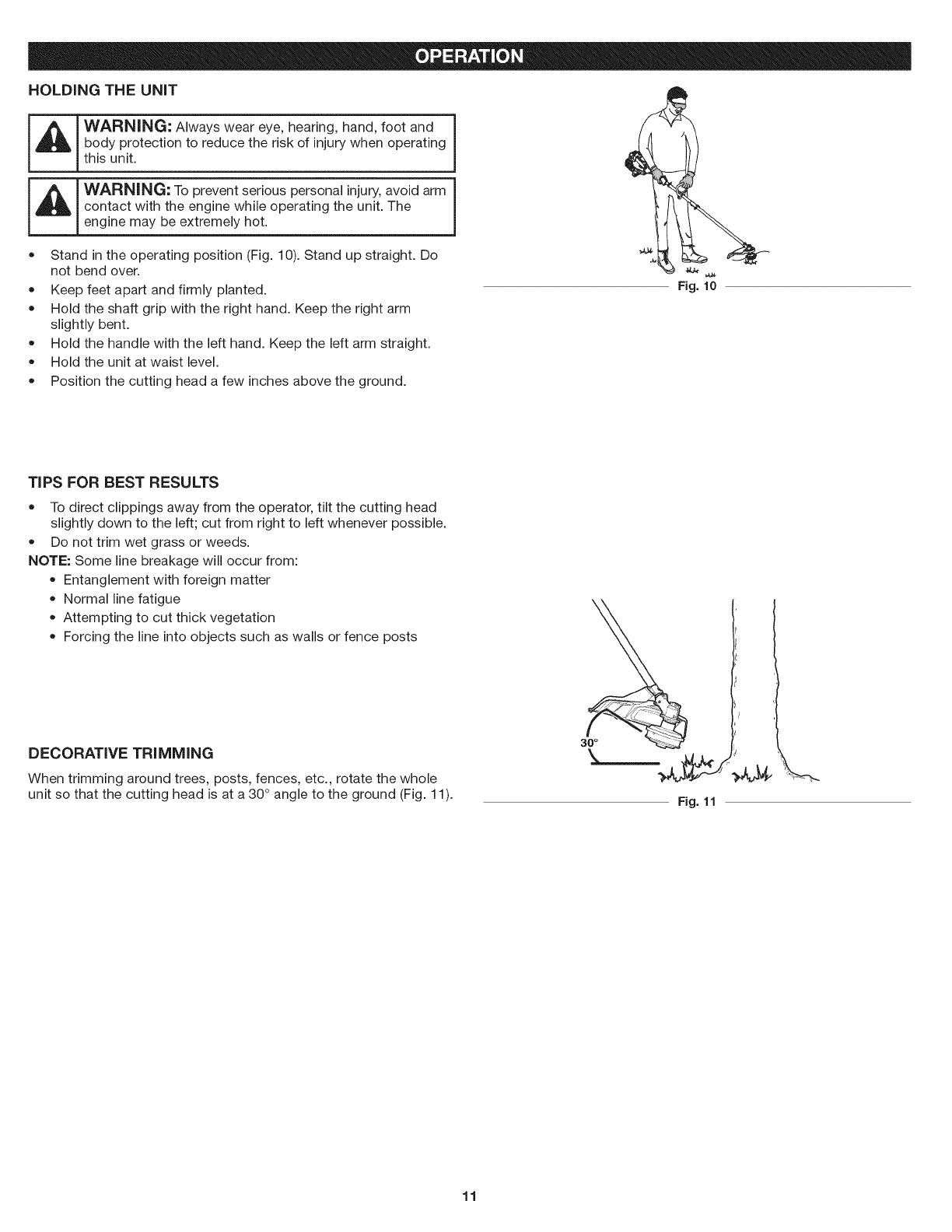 of this manual. Never use metal-reinforced line, wire, chain or