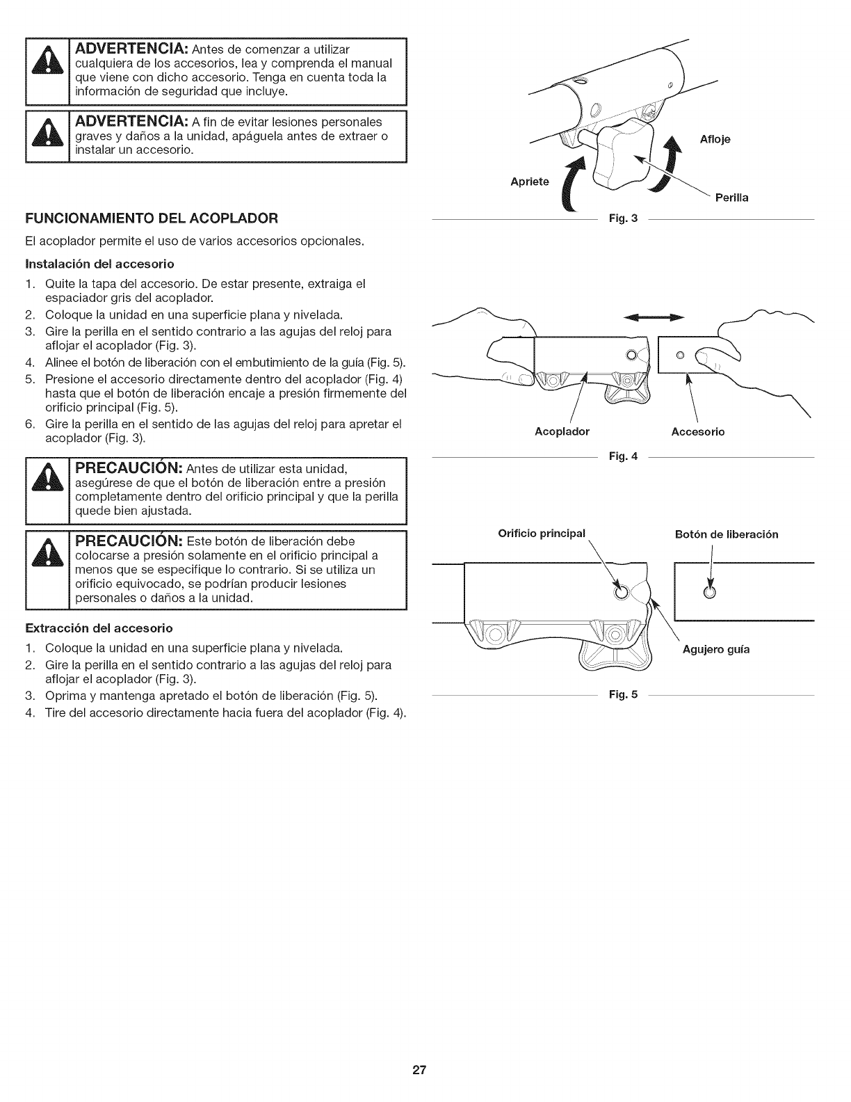 ADVERTENClA: A fin de evitar lesiones personales |