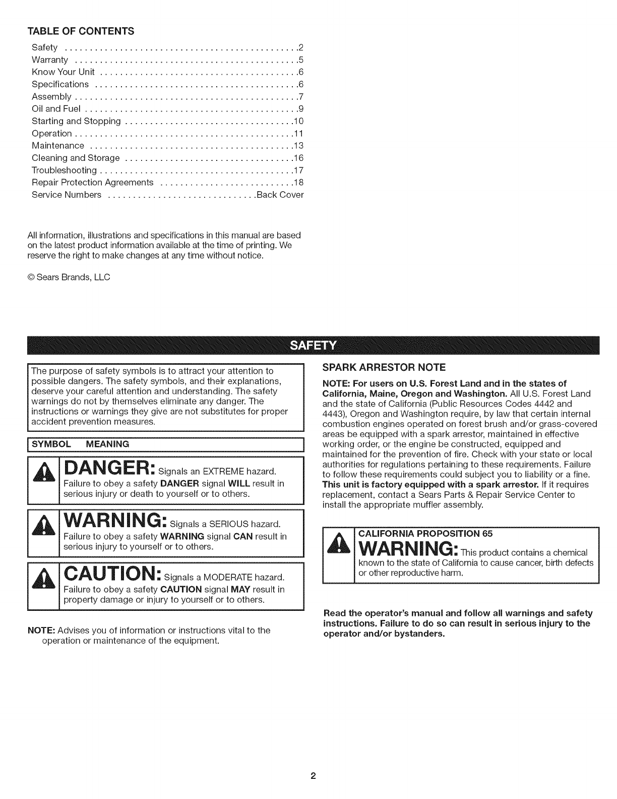 Safety............................................... 2