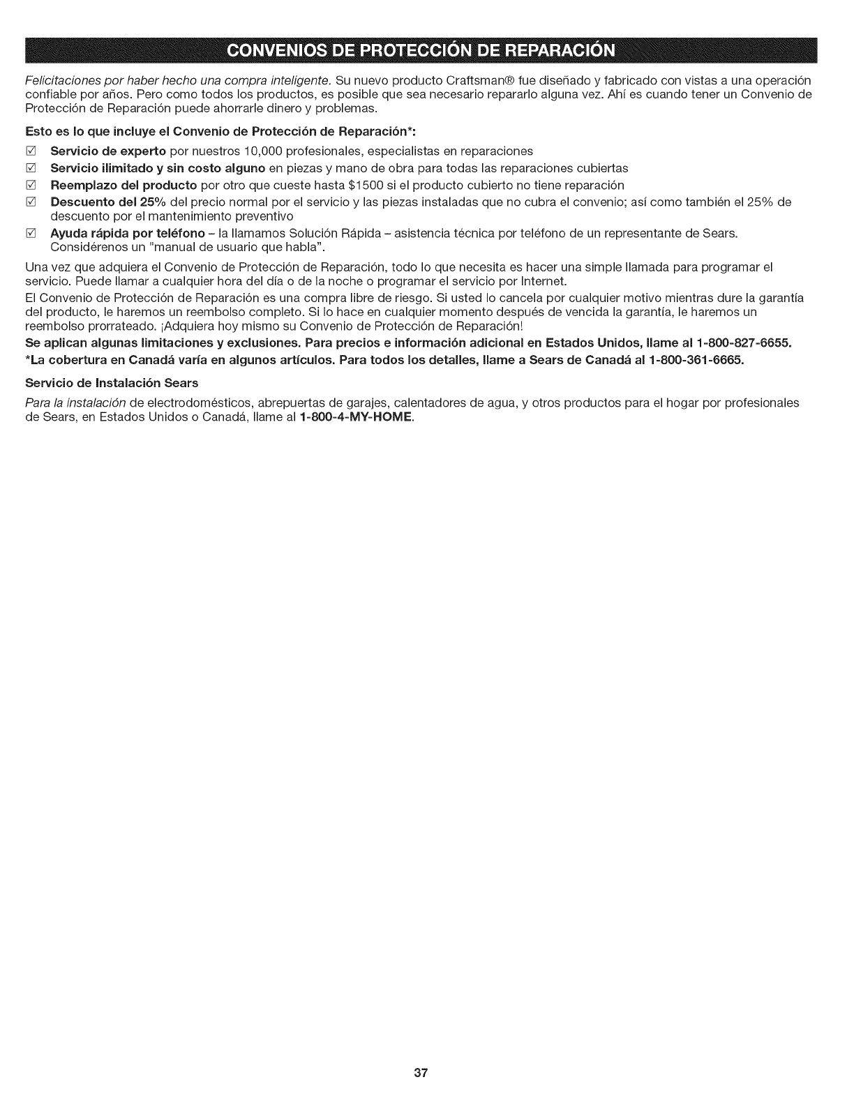 *La cobertura en Canada varia en algunos articulos. Para todos los detalles, Ilame a Sears de Canada al 1-800-361-6665.