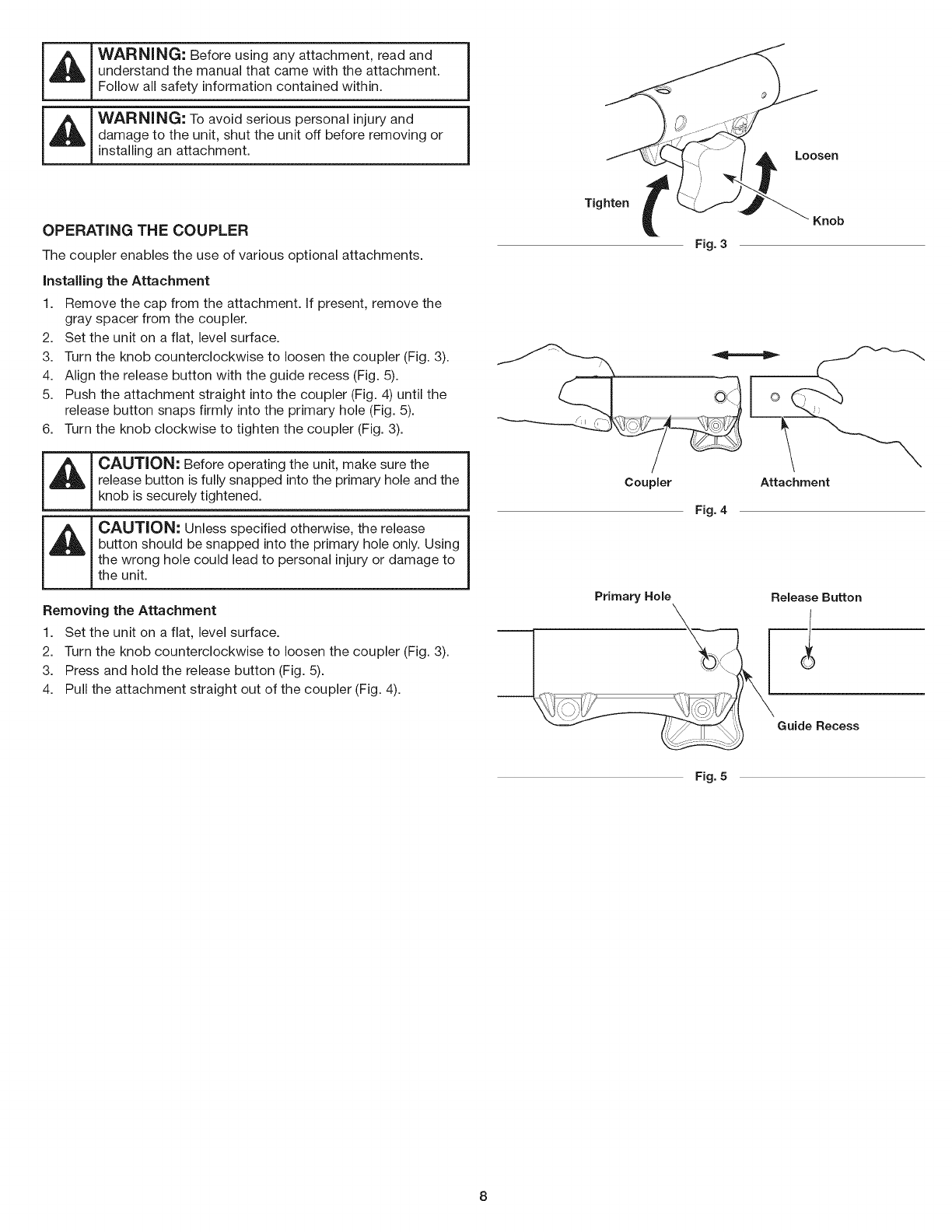 way. Do not operate the unit with loose or damaged parts.