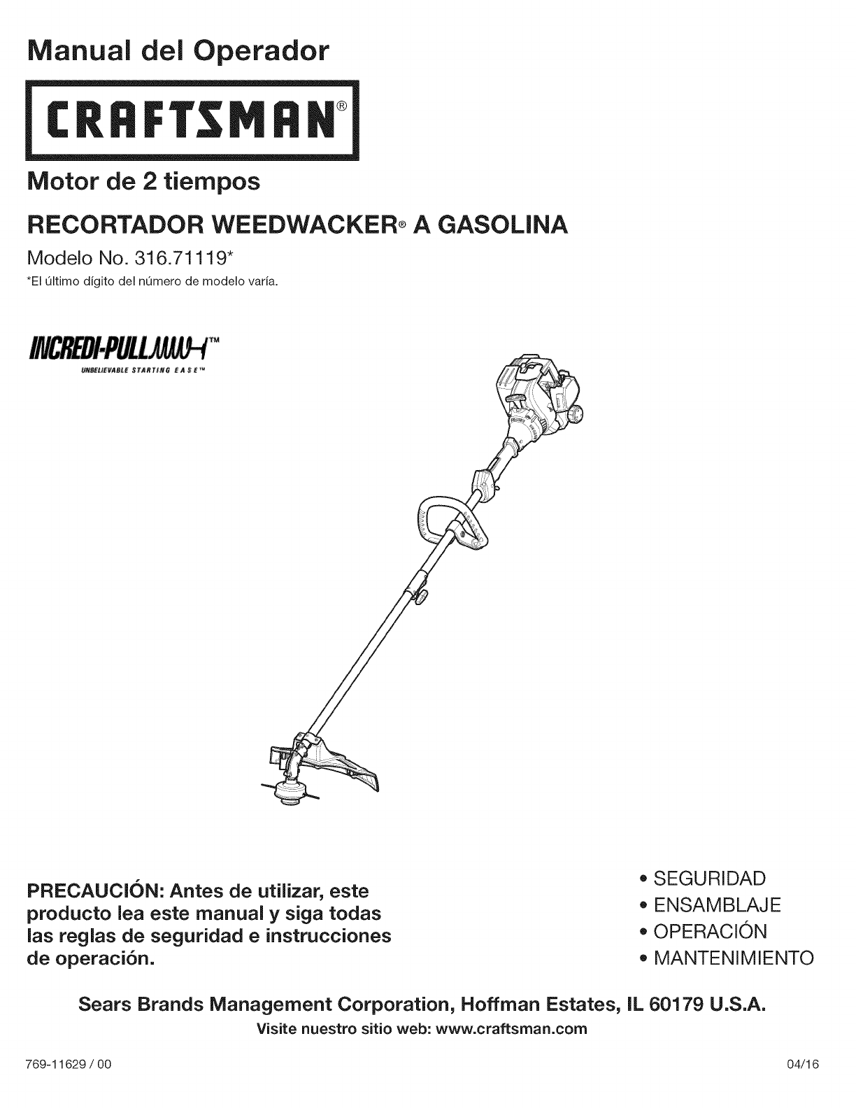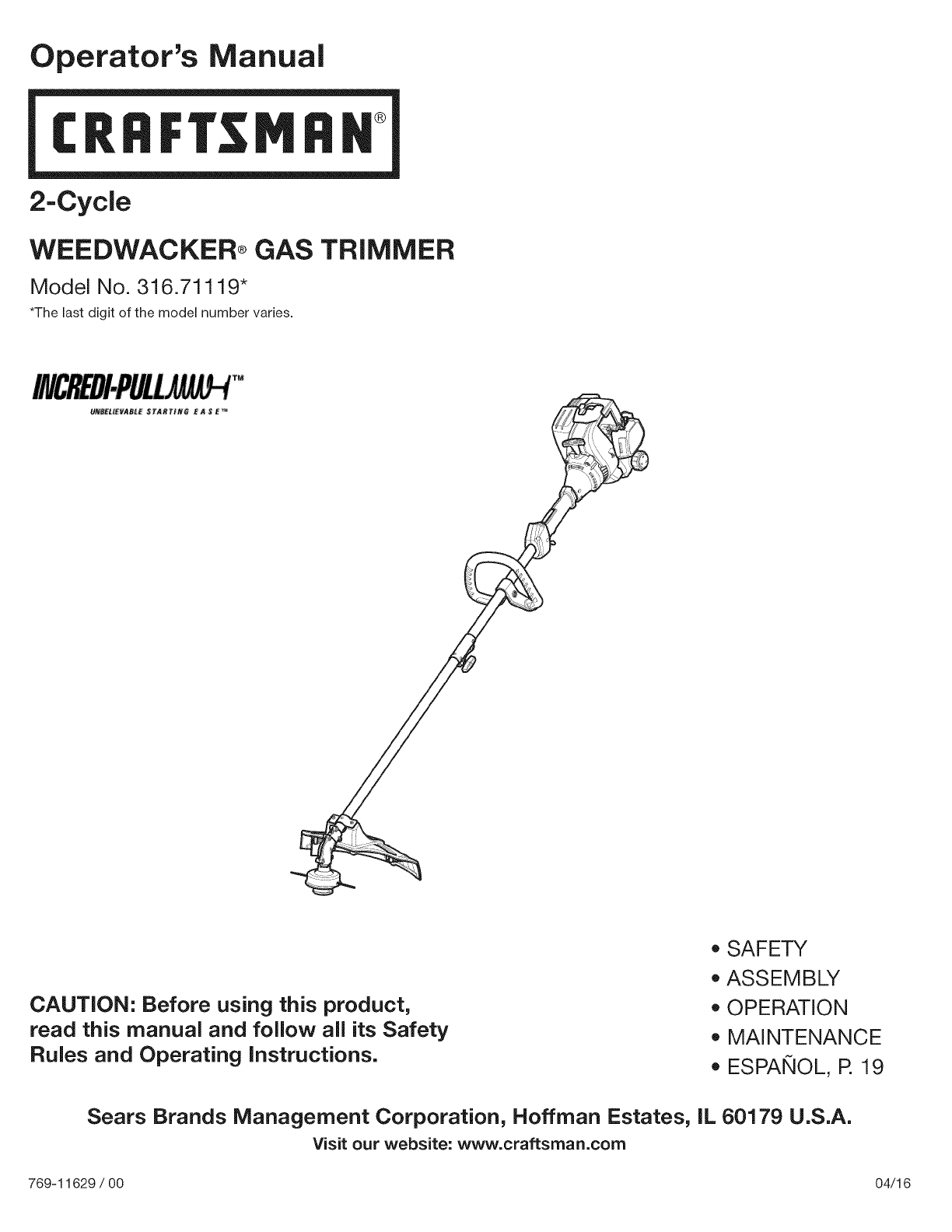 Craftsman 316711193 1604450L User Manual LINE TRIMMERS/WEEDWACKERS, GAS Manuals And Guides