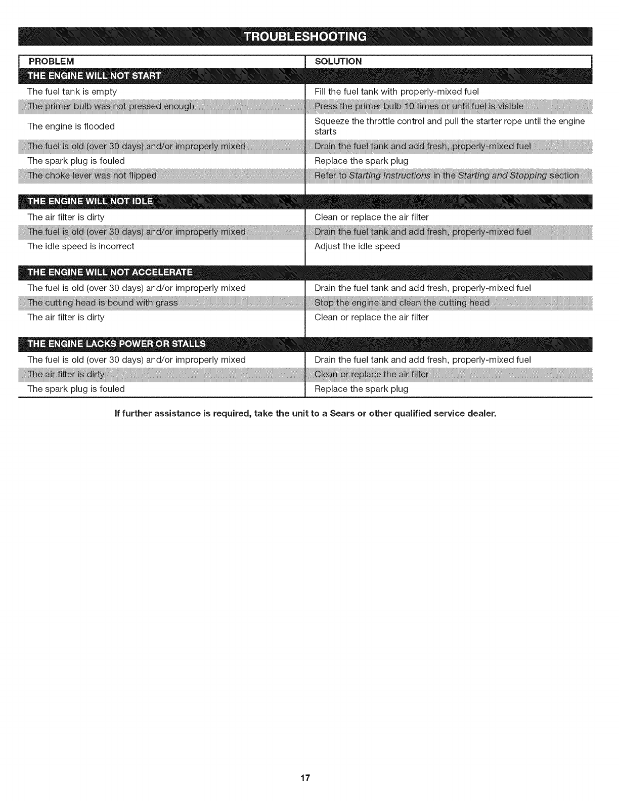 User Manual: Craftsman 316711193 316711193 CRAFTSMAN LINE TRIMMERS/WEEDWACKERS, GAS - Manuals and Guides View the owners manual for your CRAFTSMAN LINE TRIMMERS/WEEDWACKERS, GAS #316711193. Home:Lawn & Garden Parts:Craftsman Parts:316711193 Craftsman Grass trimmer (weed wacker) Manual