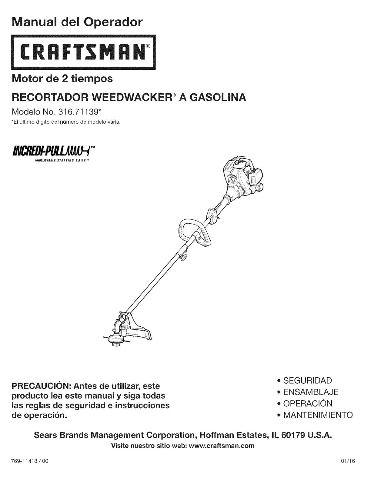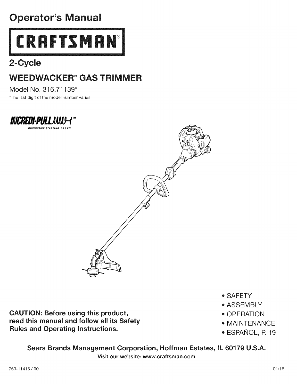 User Manual: Craftsman 316711390 316711390 CRAFTSMAN TRIMMER - Manuals and Guides View the owners manual for your CRAFTSMAN TRIMMER #316711390. Home:Lawn & Garden Parts:Craftsman Parts:316711390 Craftsman Grass trimmer (weed wacker) Manual