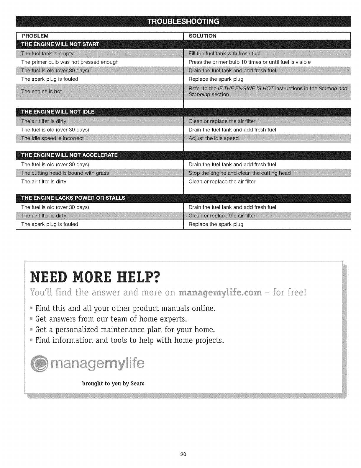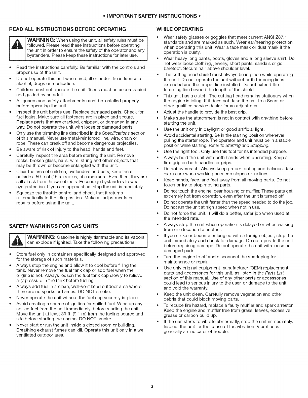 Craftsman 316731700 User Manual GAS TRIMMER Manuals And Guides 1212364L
