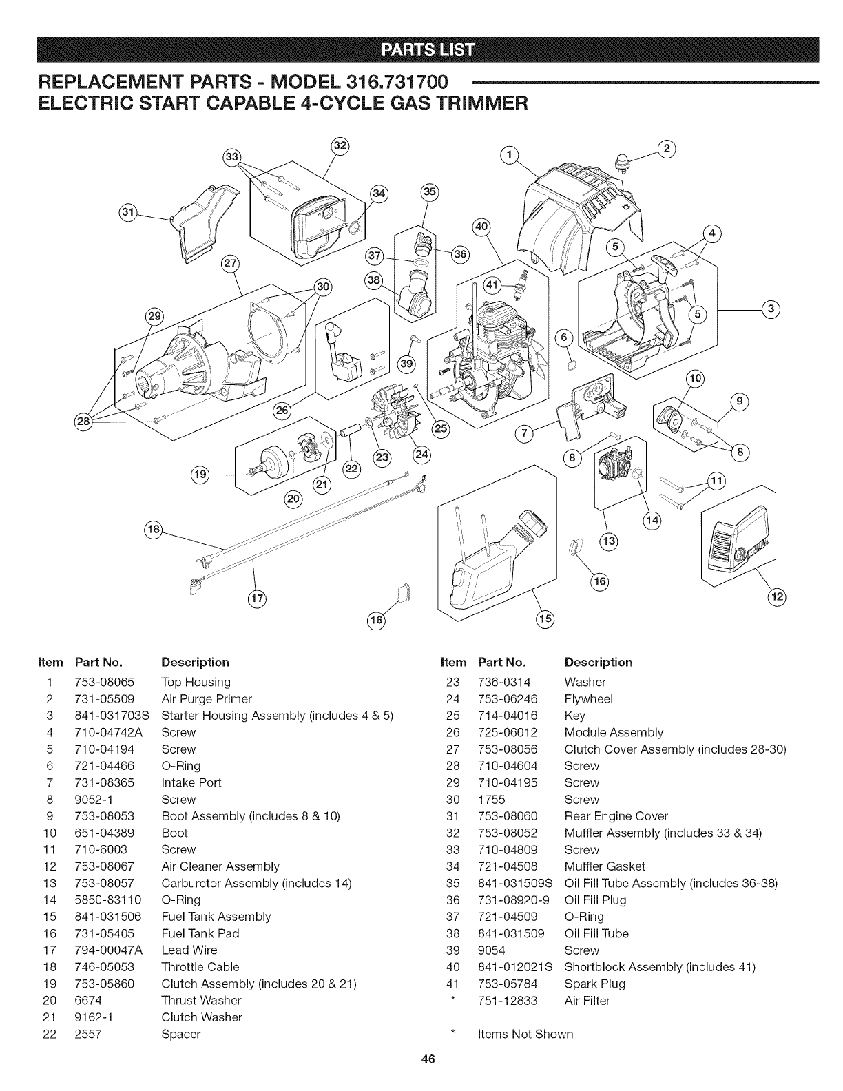 19 753-05860 Clutch Assembly (includes 20 & 21) 41 753-05784 Spark Plug