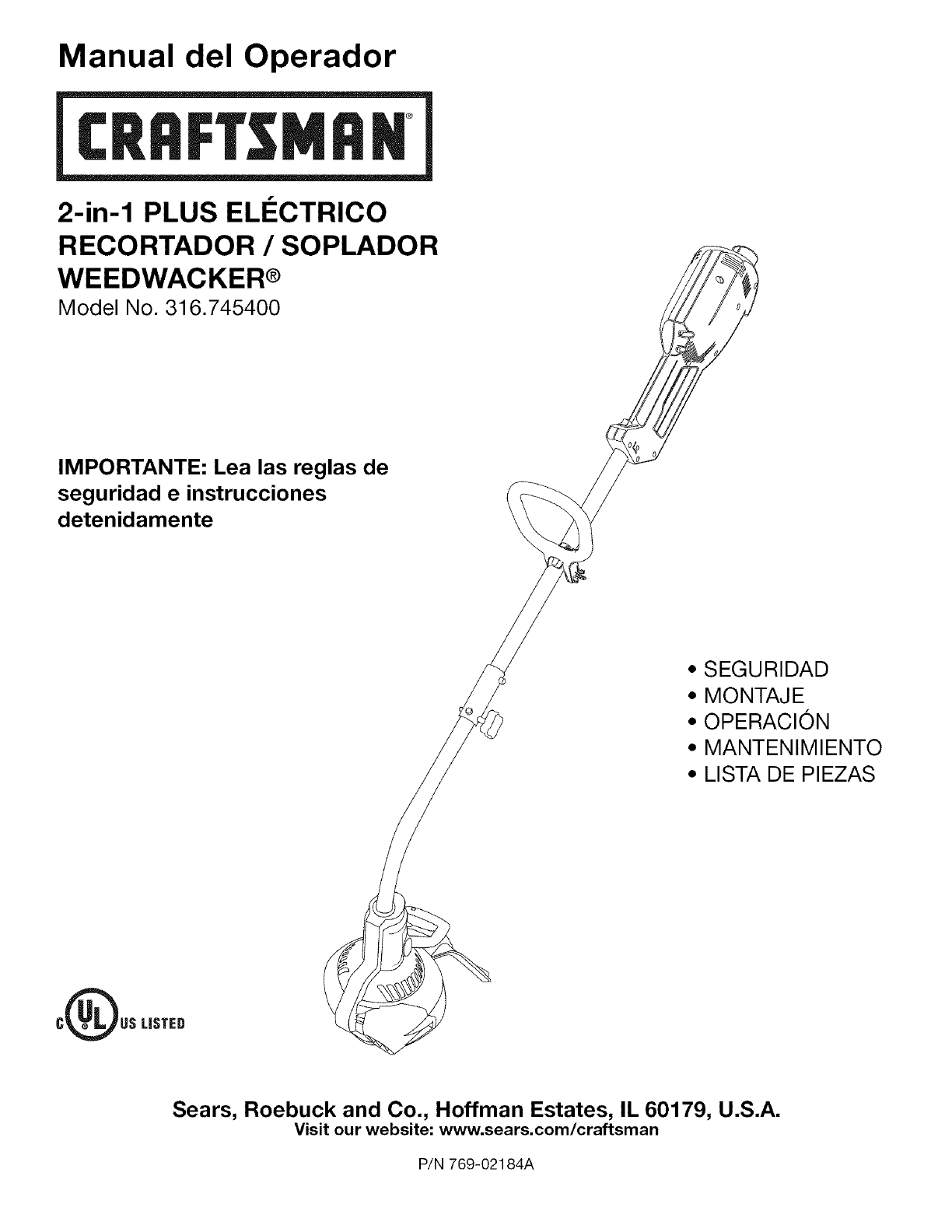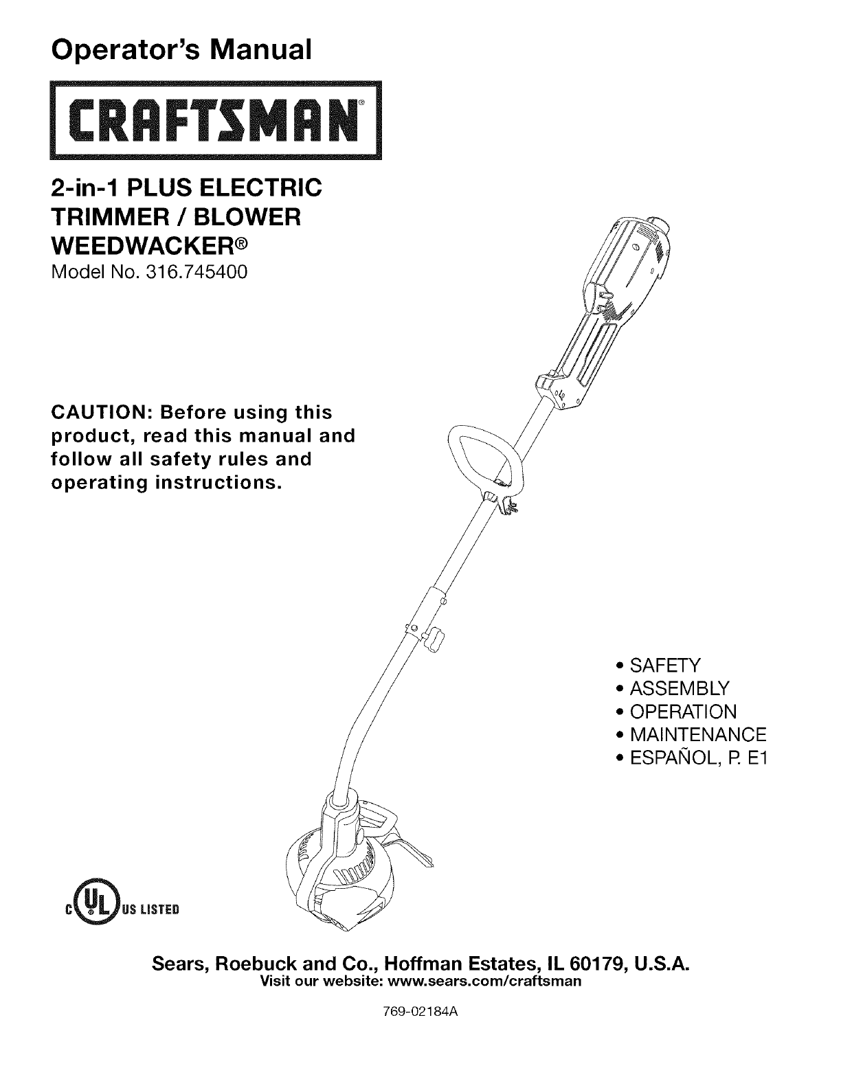 User Manual: Craftsman 316745400 316745400 CRAFTSMAN TRIMMER - Manuals and Guides View the owners manual for your CRAFTSMAN TRIMMER #316745400. Home:Lawn & Garden Parts:Craftsman Parts:316745400 Craftsman Grass trimmer (weed wacker) Manual