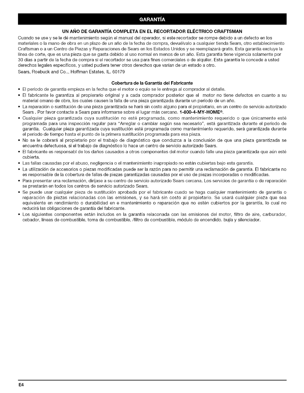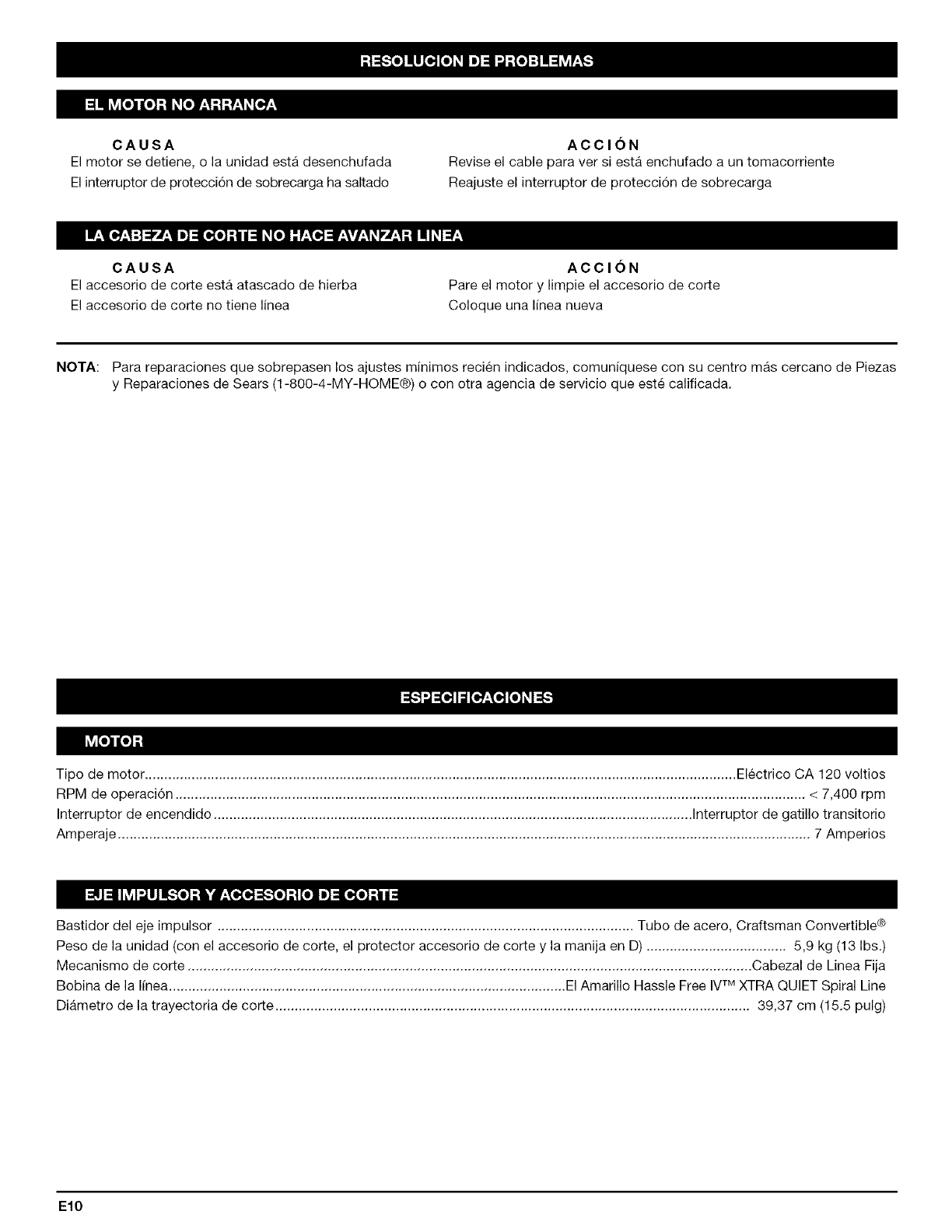 y Reparaciones de Sears (1-800-4-MY-HOME®) o con otra agencia de servicio que este calificada.
