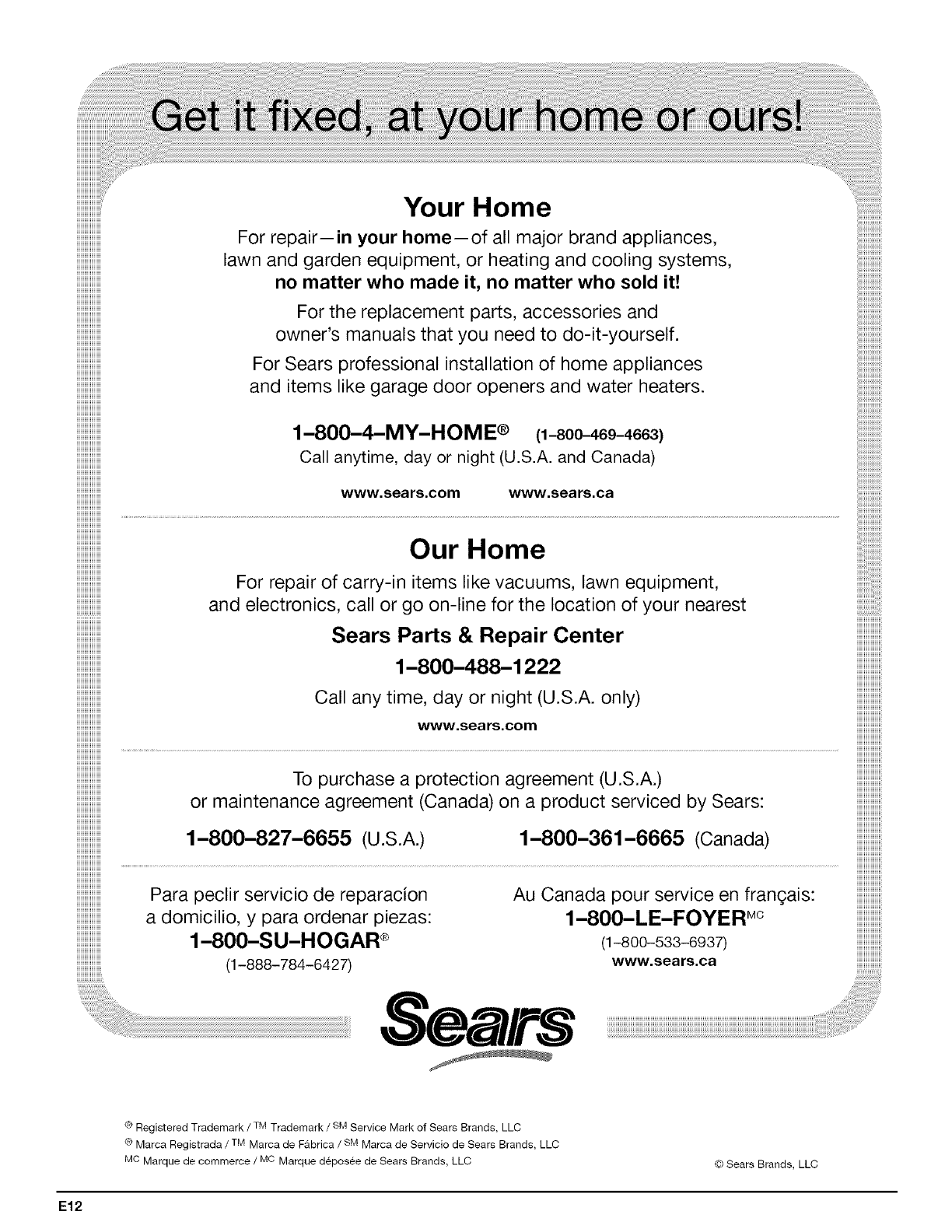® Marca Registrada /TM Marca de Fabrica /SM Mama de Servicio de Sears Brands, LLC