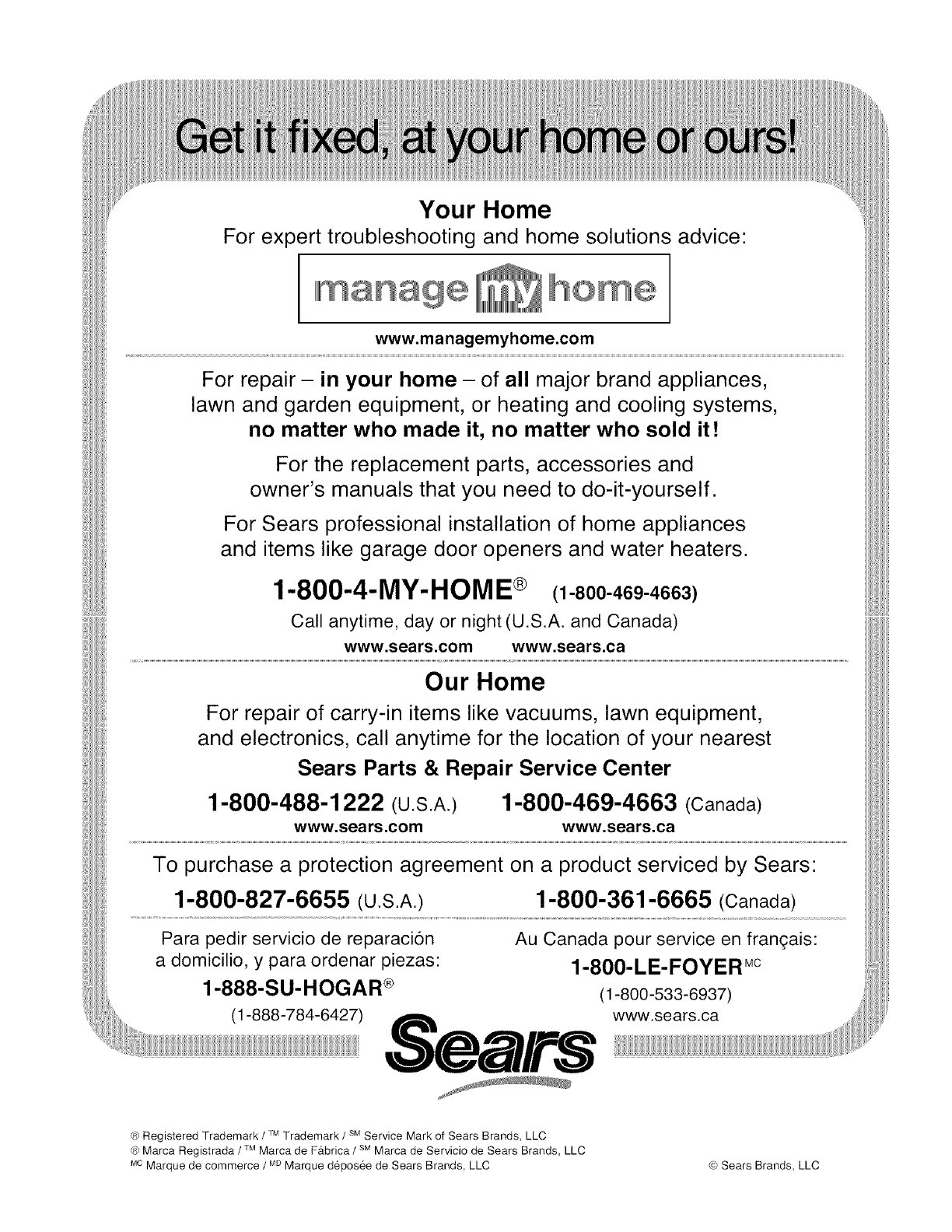 ® Registered Trademark /Trademark /Service Mark of Sears Brands, LLC