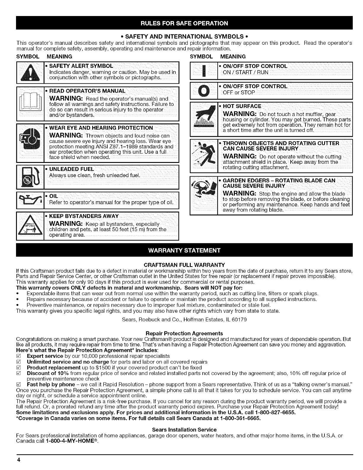 CRAFTSMAN Edger Manual L0805205 CRAFTSMAN Edger Owner's Manual, CRAFTSMAN Edger installation guides