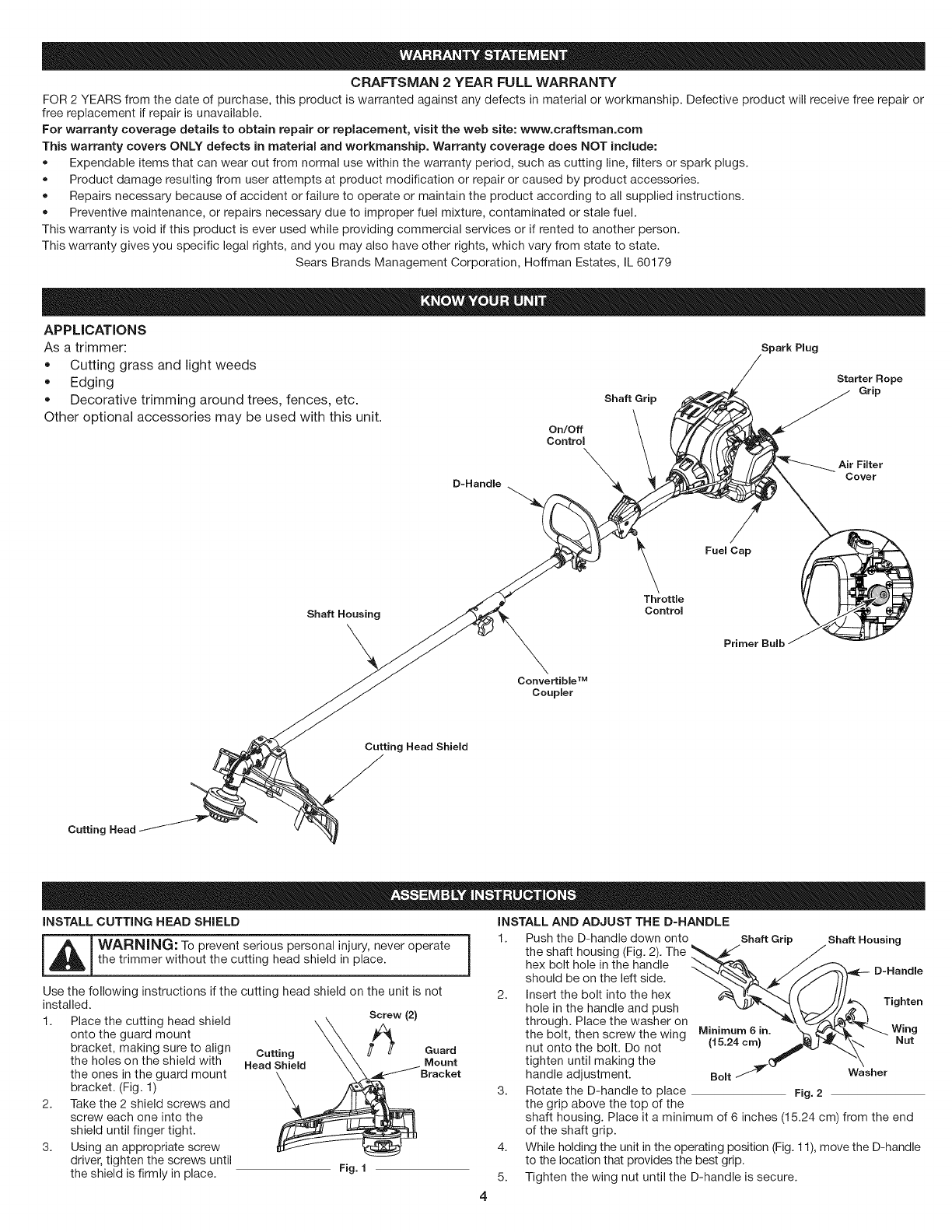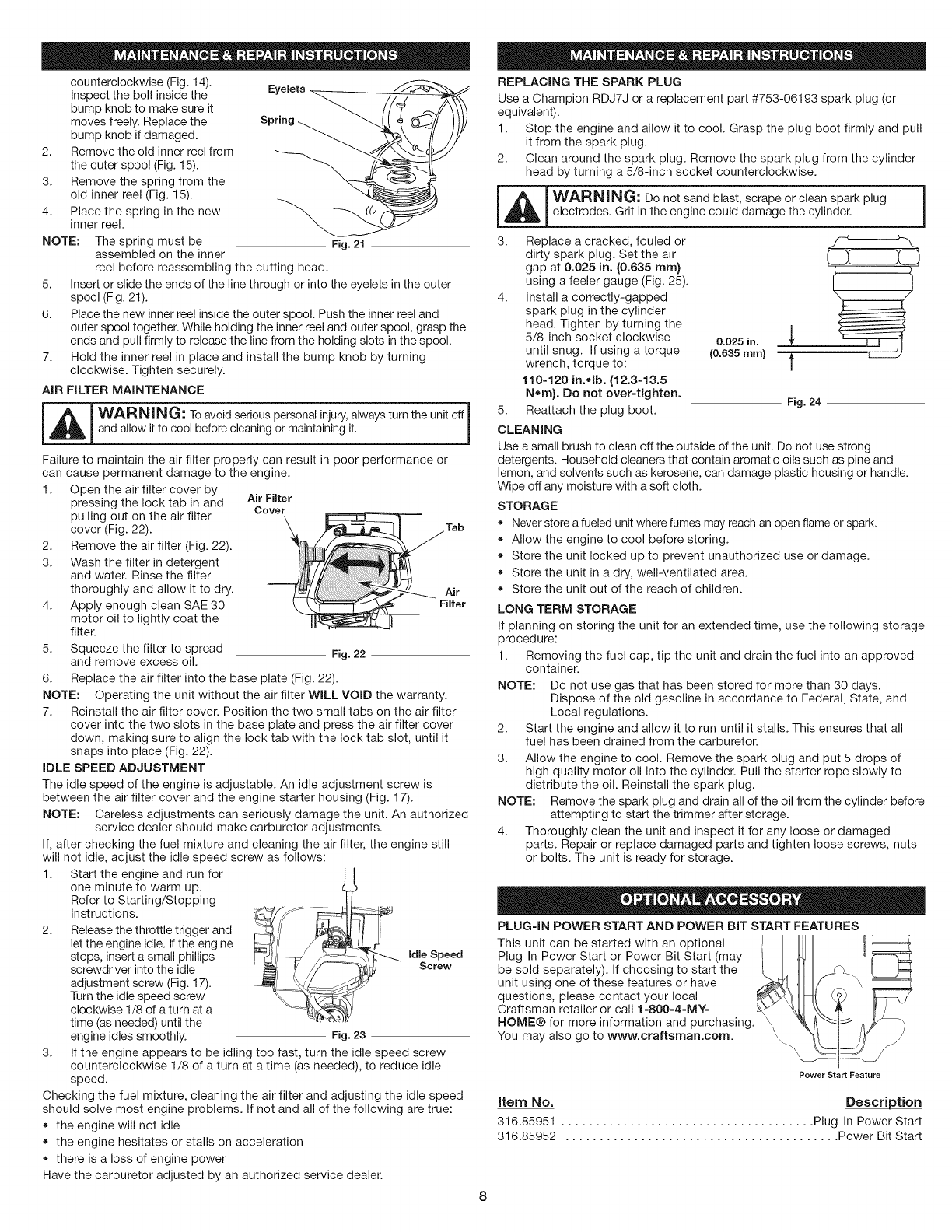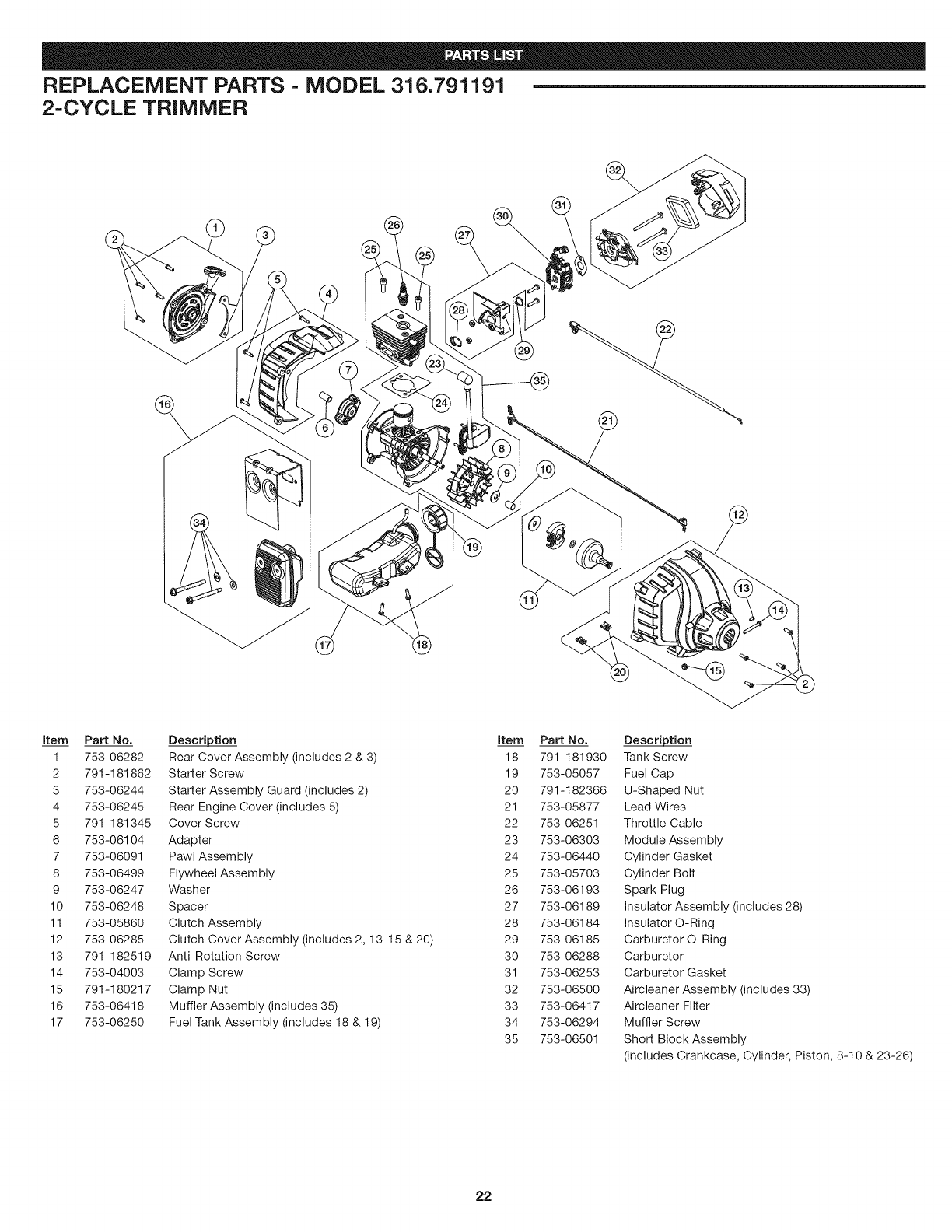 User Manual: Craftsman 316791191 316791191 CRAFTSMAN GAS TRIMMER - Manuals and Guides View the owners manual for your CRAFTSMAN GAS TRIMMER #316791191. Home:Lawn & Garden Parts:Craftsman Parts:316791191 Craftsman Grass trimmer (weed wacker) Manual