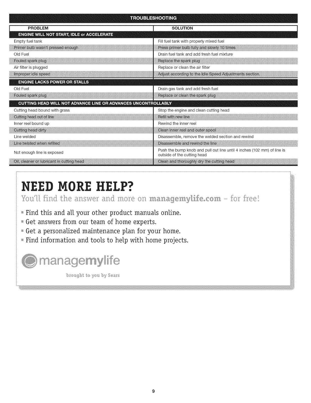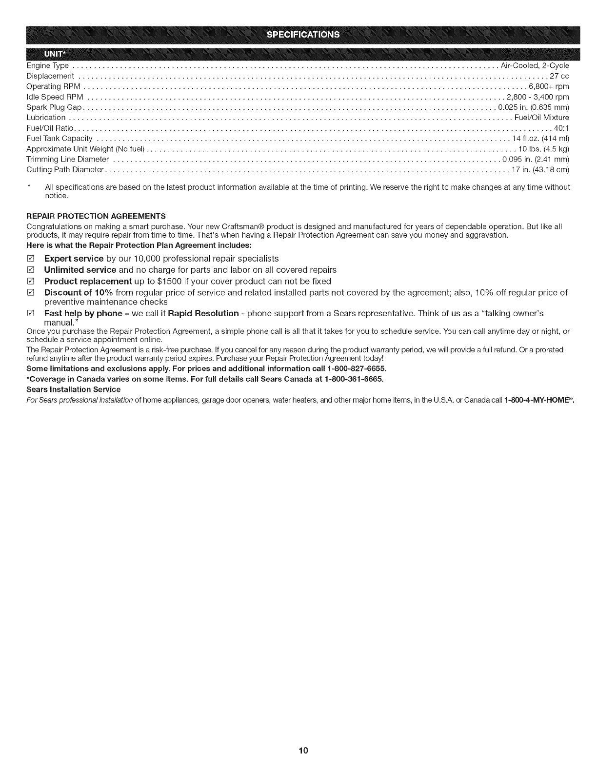 Craftsman 316791191 1107066L User Manual GAS TRIMMER Manuals And Guides