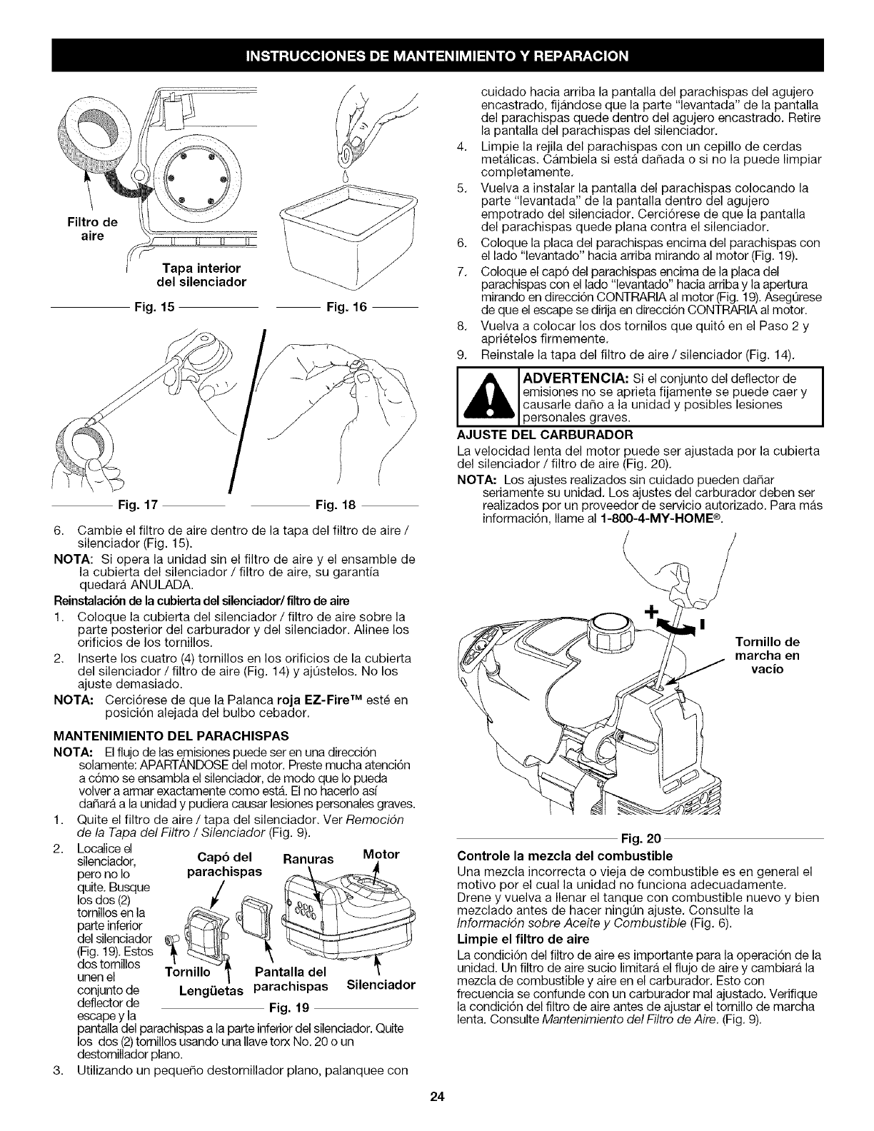 for fuel leaks. Make sure all fasteners are in place and secure.
