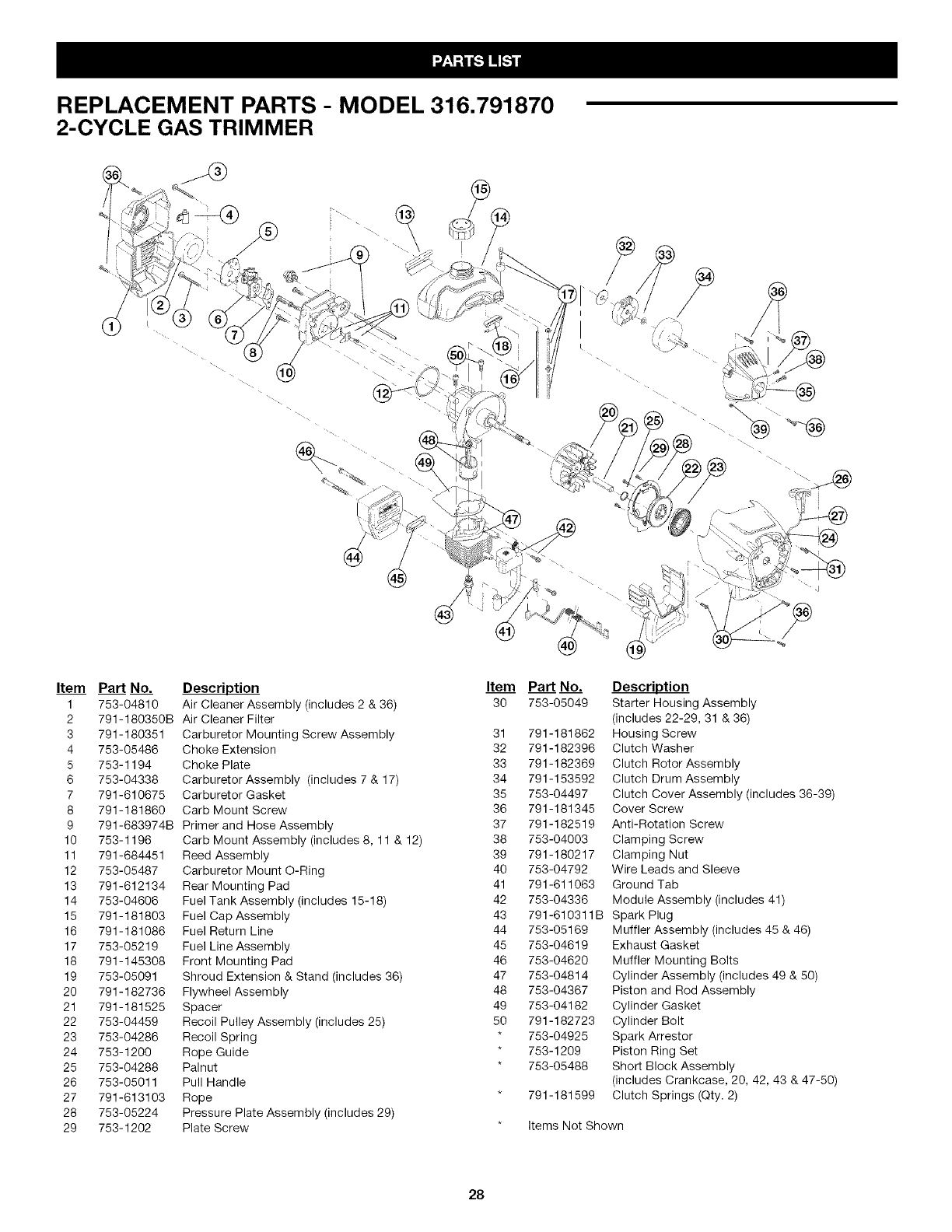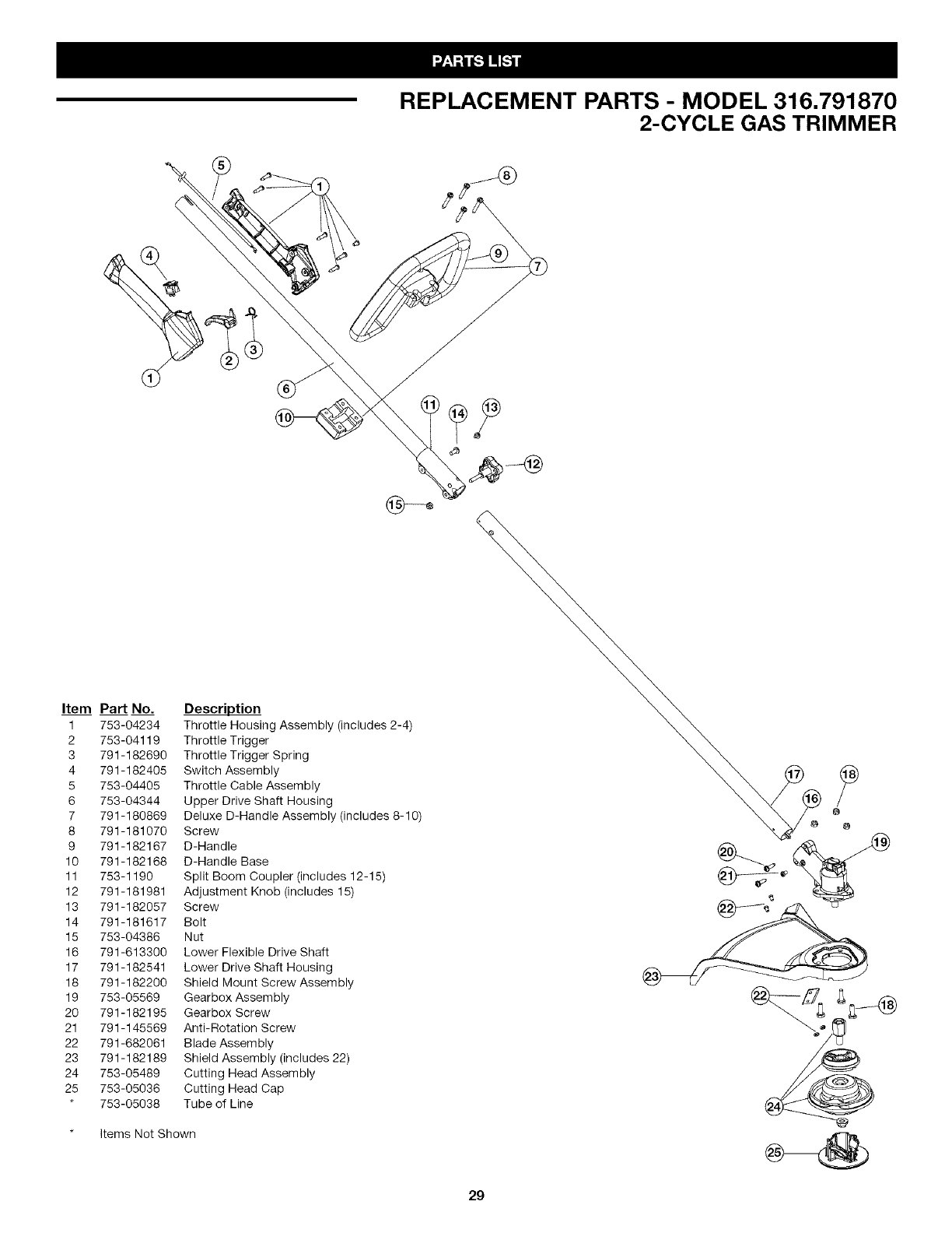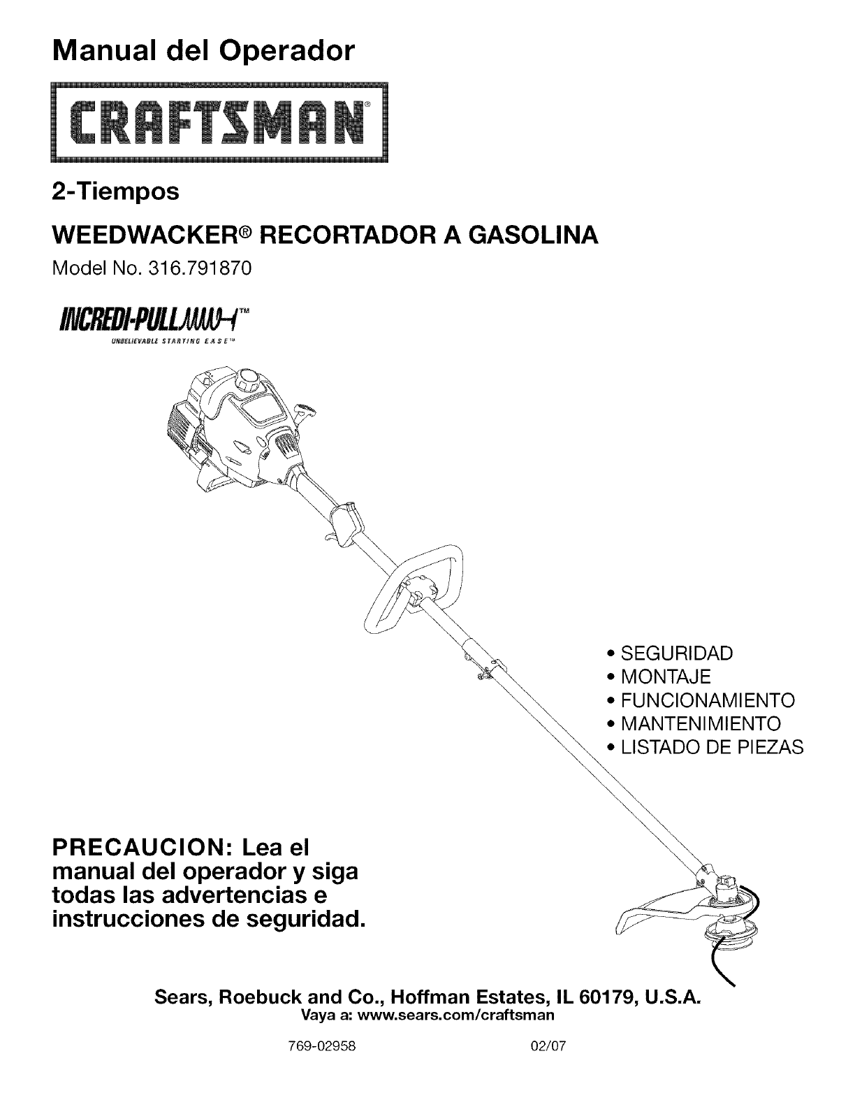 User Manual: Craftsman 316791870 316791870 CRAFTSMAN TRIMMER - Manuals and Guides View the owners manual for your CRAFTSMAN TRIMMER #316791870. Home:Lawn & Garden Parts:Craftsman Parts:316791870 Craftsman Grass trimmer (weed wacker) Manual