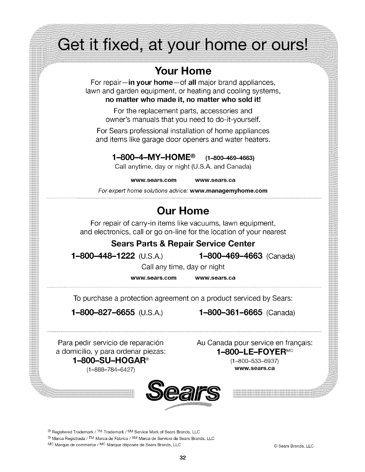 ® Marca Registrada /TM Marca de Fabrica /SM Mama de Servicio de Sears Brands, LLC