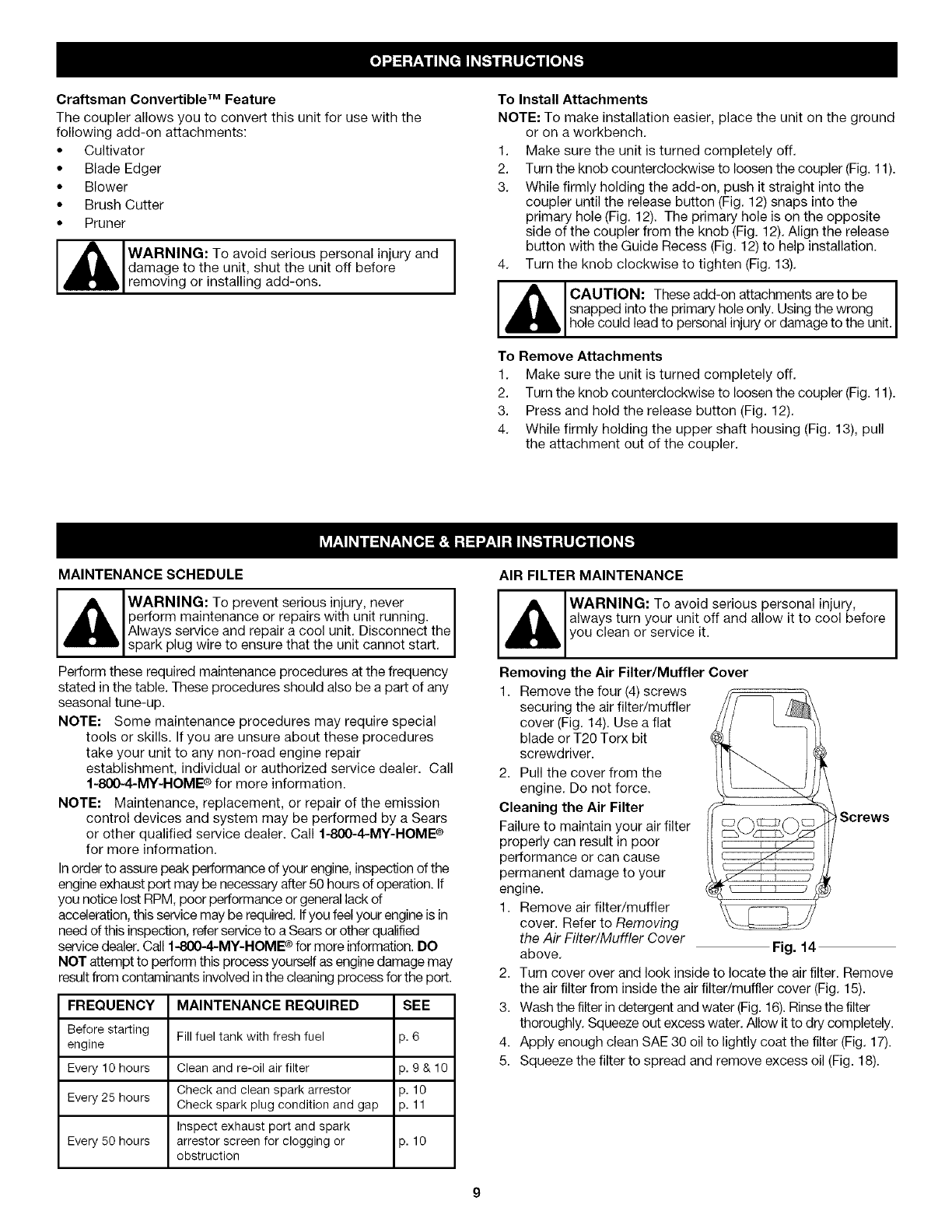 Maintenance and Repair Instructions ................ 9