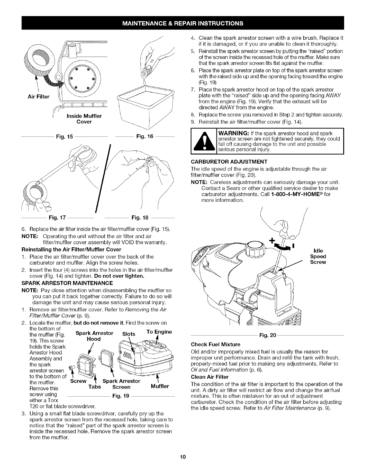 engine is hot. Never operate the unit without the fuel cap
