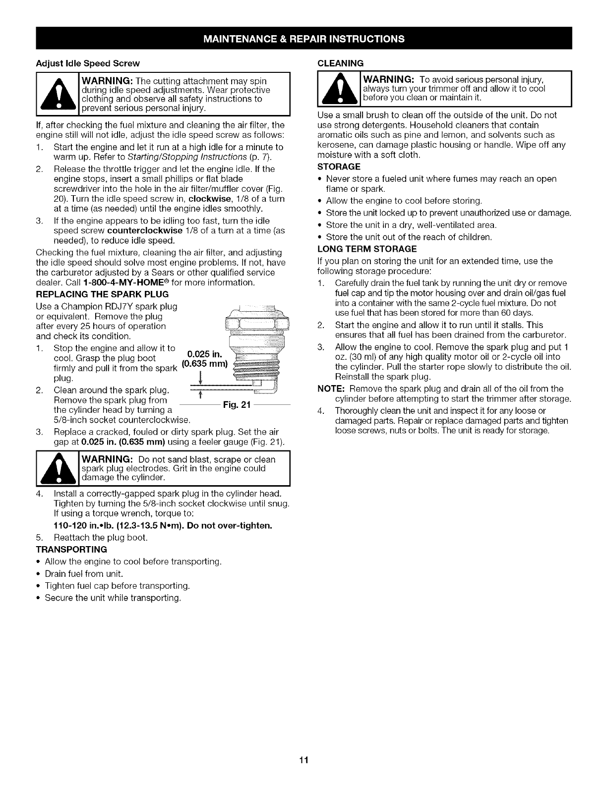 Cleaning and Storage ........................... 11