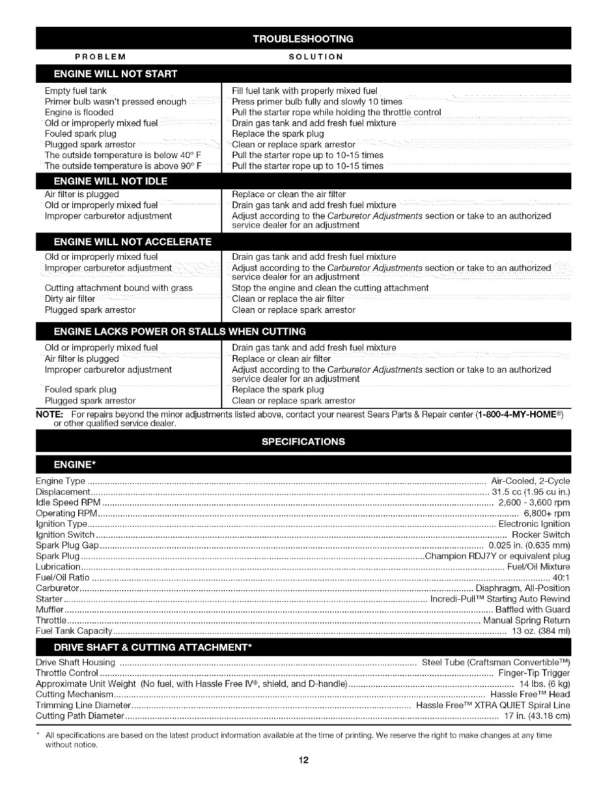 Craftsman 316791870 User Manual TRIMMER Manuals And Guides L0704054