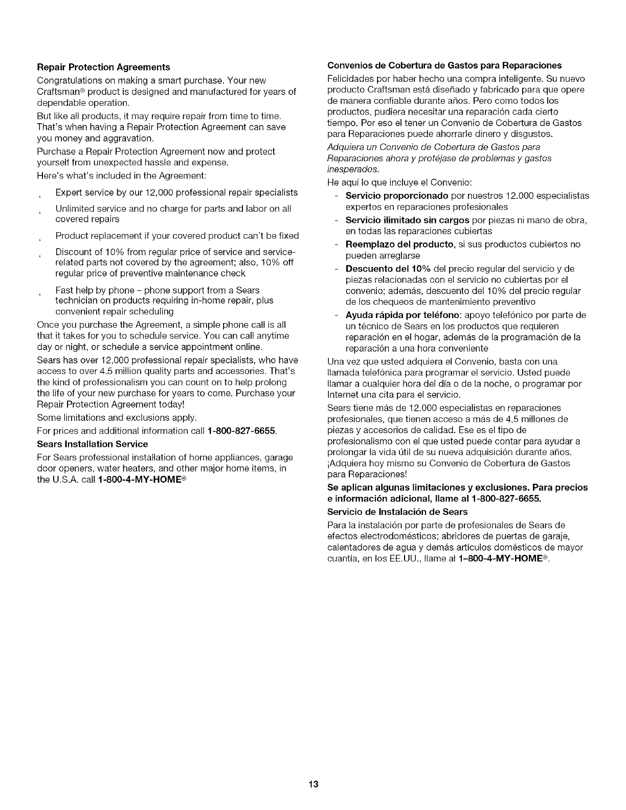 Visit our website" www.sears.com/craftsman