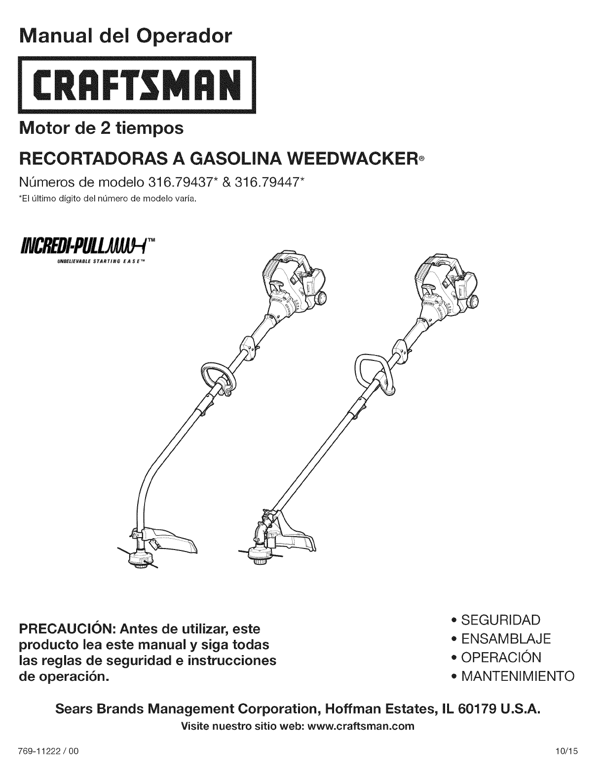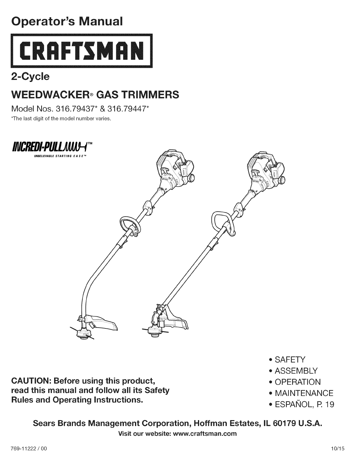 User Manual: Craftsman 316794370 316794370 CRAFTSMAN TRIMMER - Manuals and Guides View the owners manual for your CRAFTSMAN TRIMMER #316794370. Home:Lawn & Garden Parts:Craftsman Parts:316794370 Craftsman Grass trimmer (weed wacker) Manual