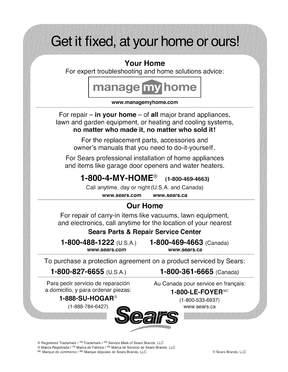 ® Registered Trademark /Trademark /Service Mark of Sears Brands, LLC