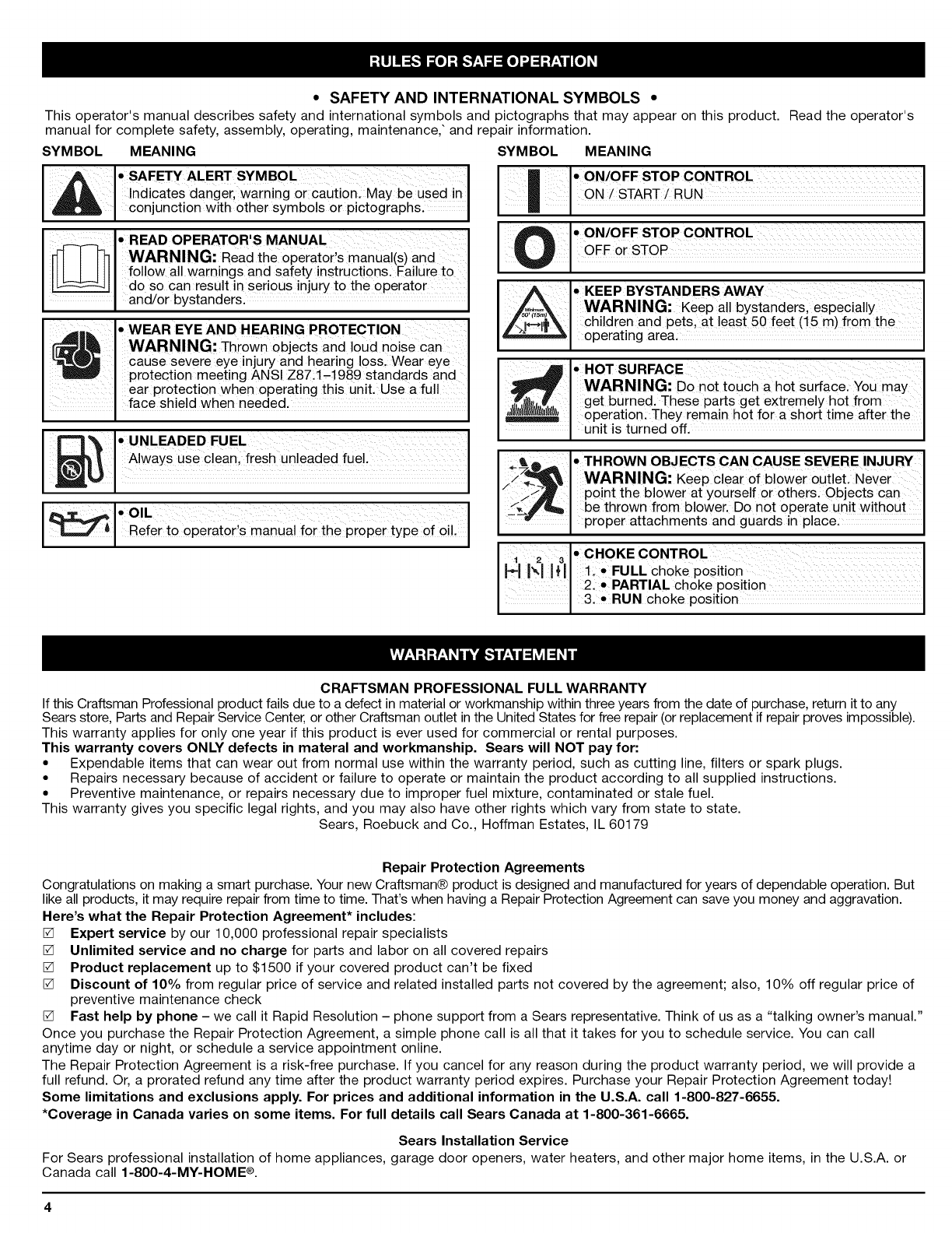 CRAFTSMAN Blower, Gas Manual L0809104 CRAFTSMAN Blower, Gas Owner's Manual, CRAFTSMAN Blower, Gas installation guides