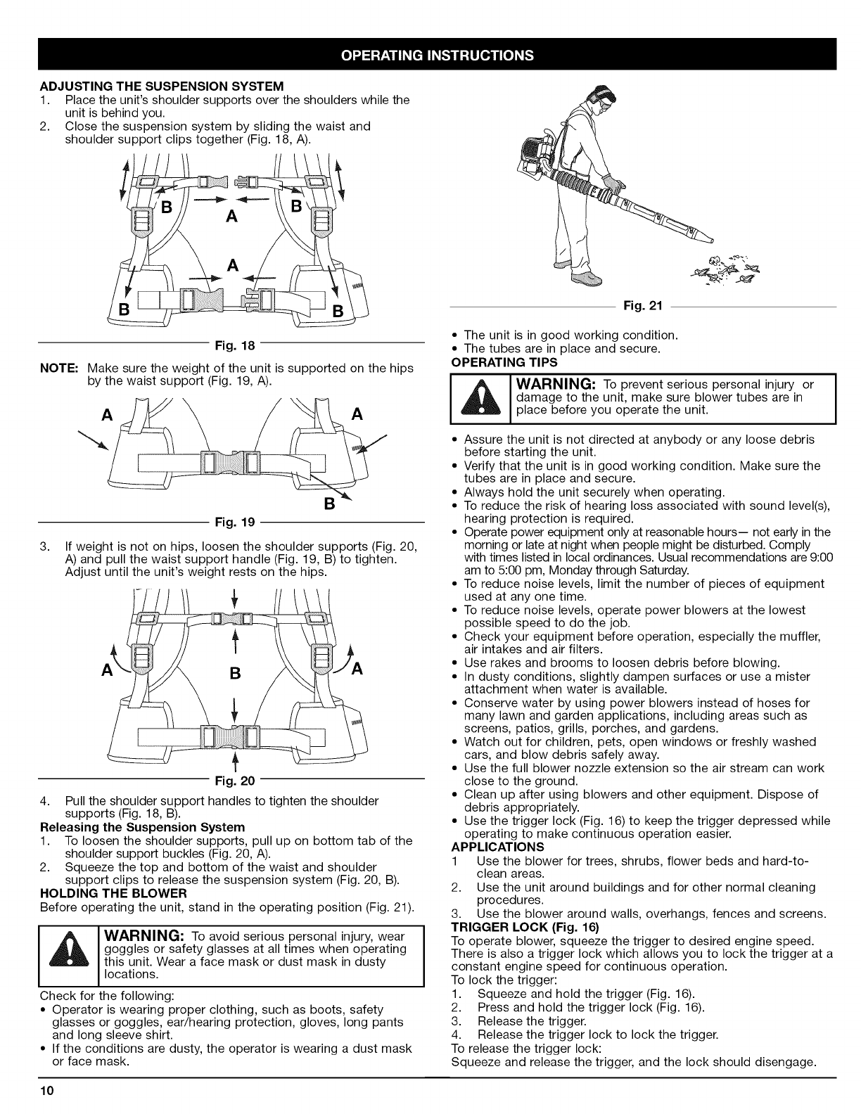Craftsman 316794800 User Manual BACKPACK BLOWER Manuals And Guides L0809104