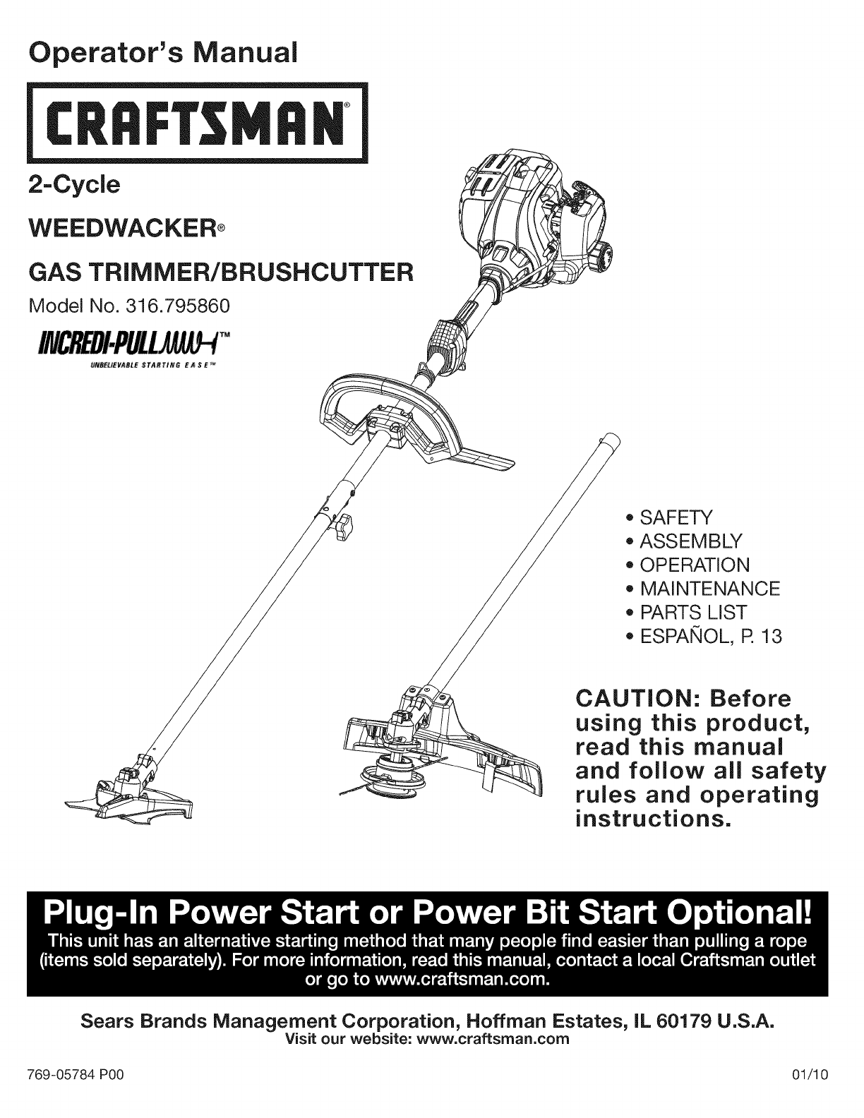 Craftsman 316795860 User Manual TRIMMER/BRUSHCUTTER Manuals And Guides L1002063