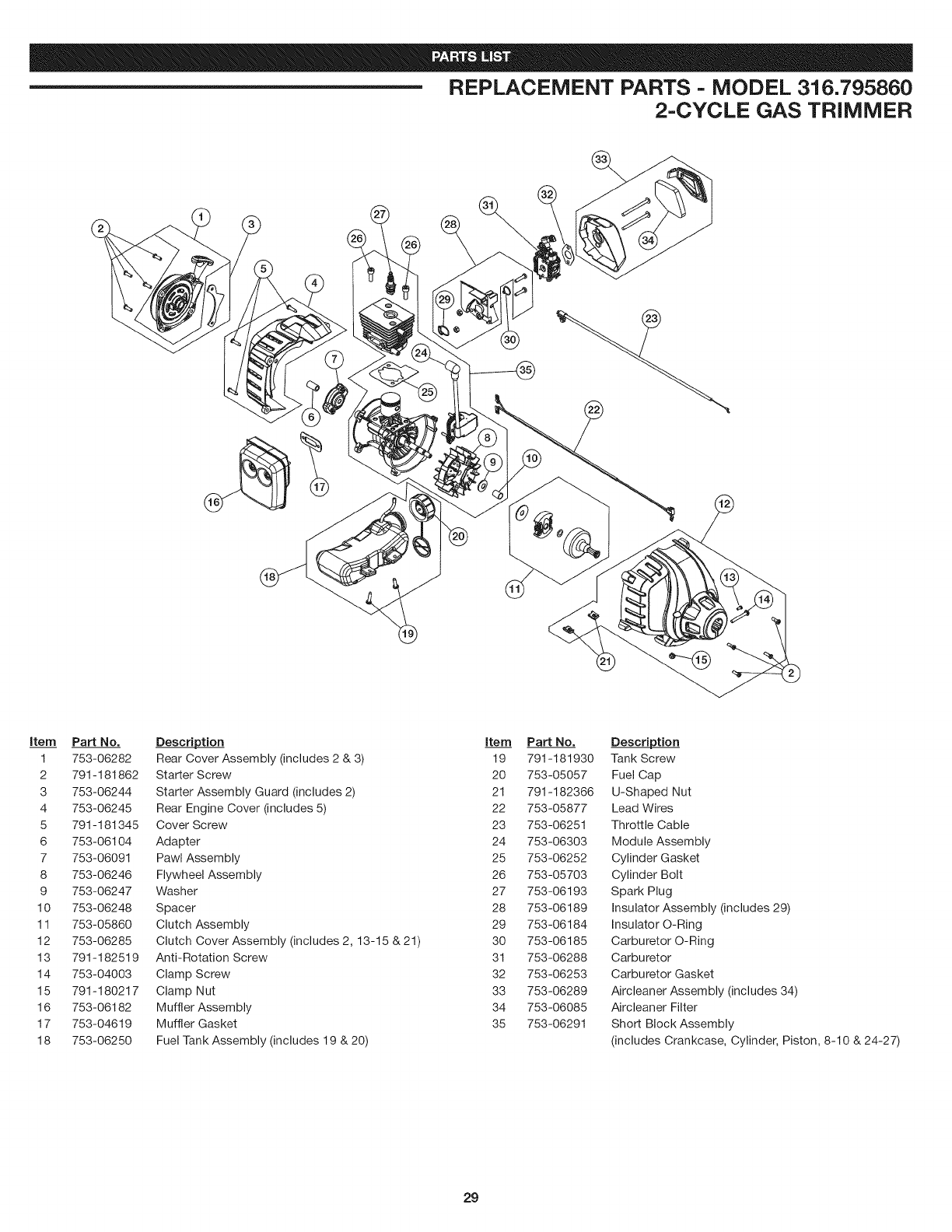 17 753-04619 Muffler Gasket 35 753-06291 Short Block Assembly