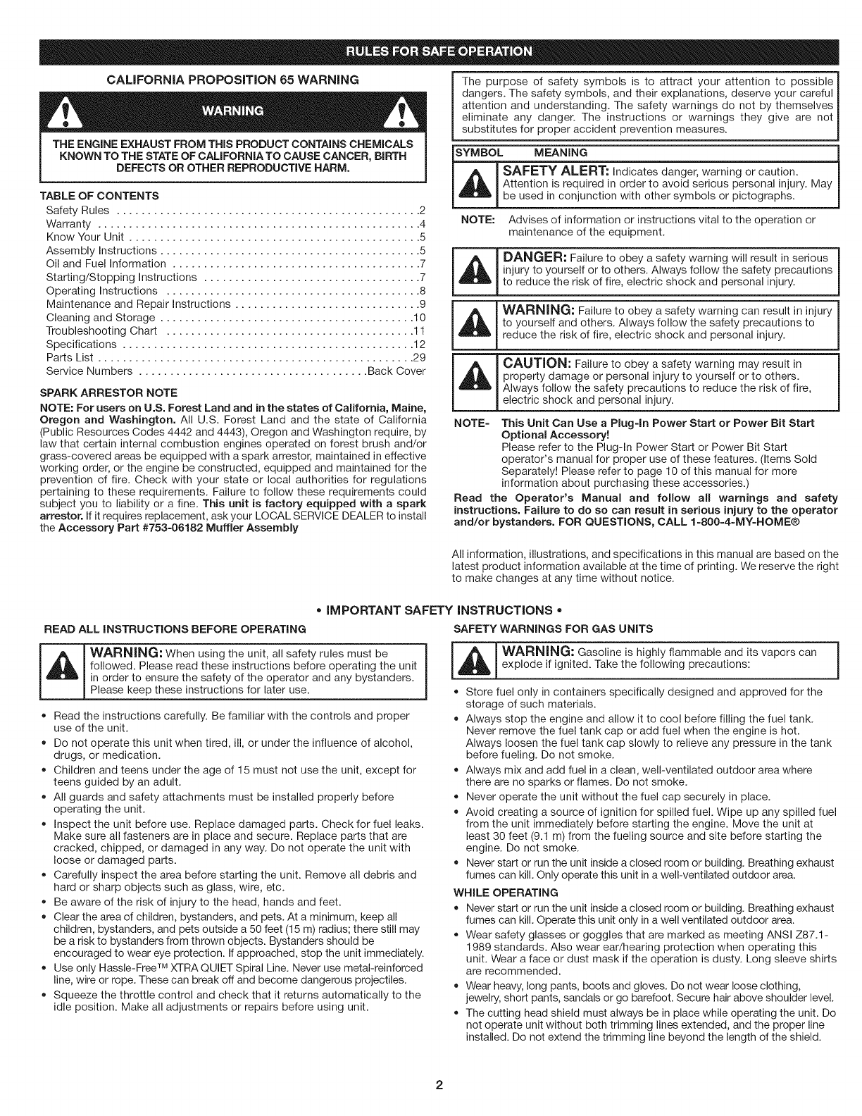 READ ALL INSTRUCTIONS BEFORE OPERATING SAFETY WARNINGS FOR GAS UNITS