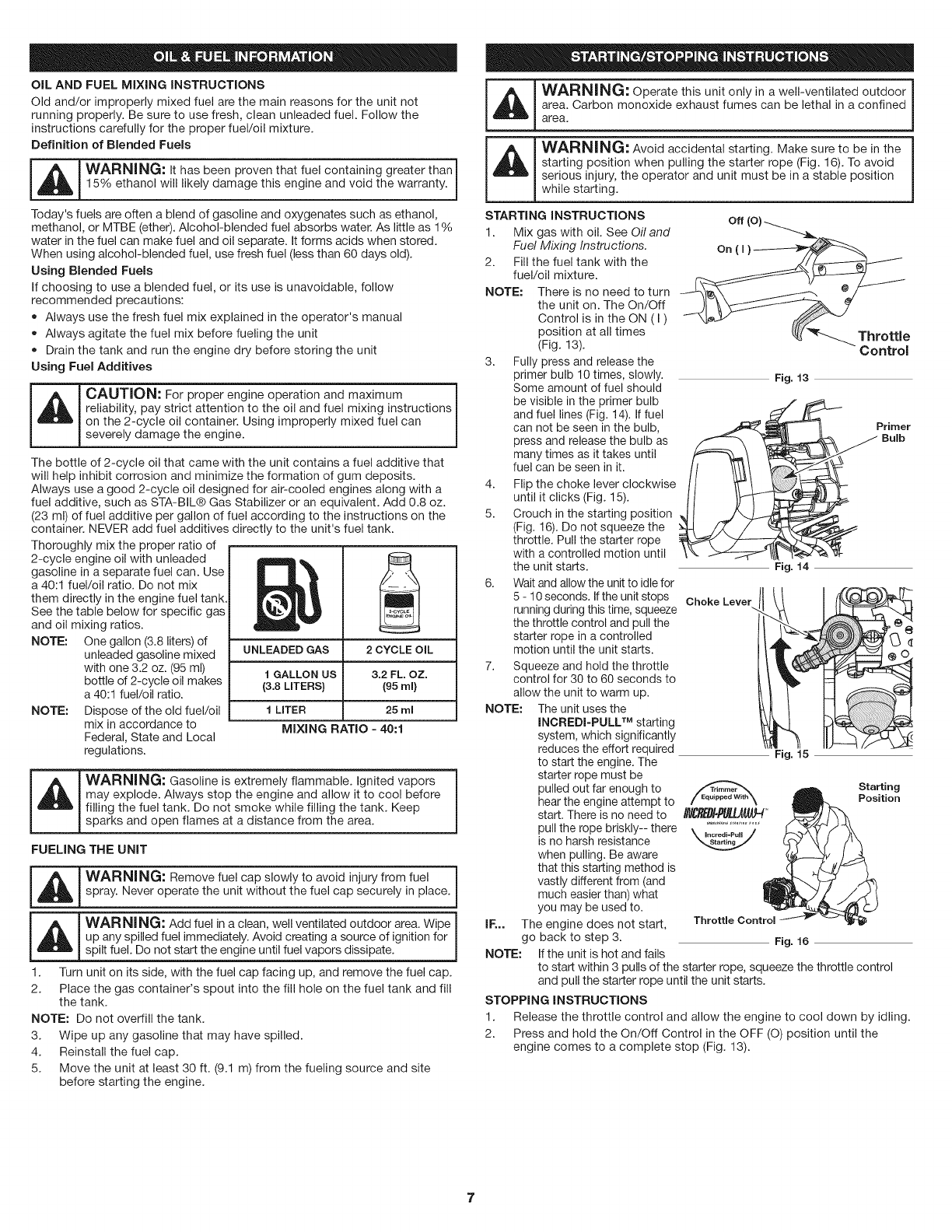 Starting/Stopping Instructions ................................... 7