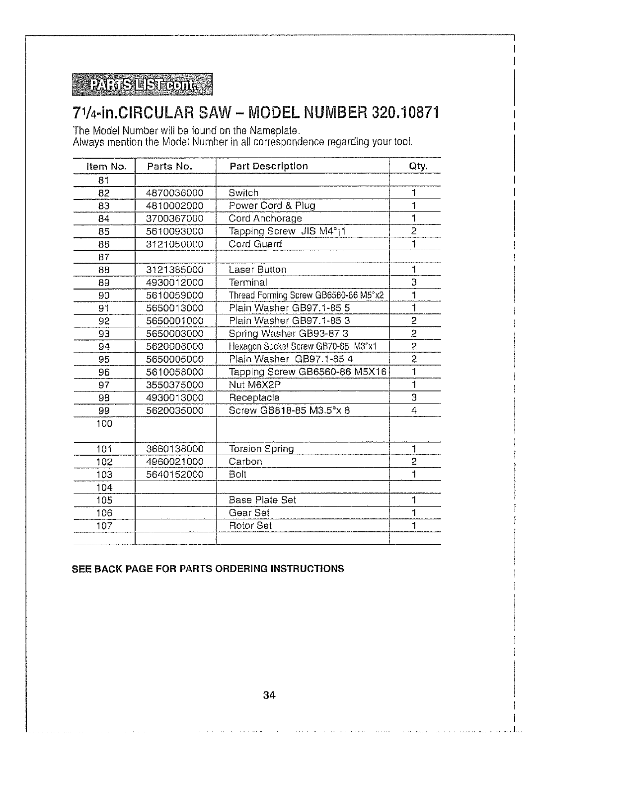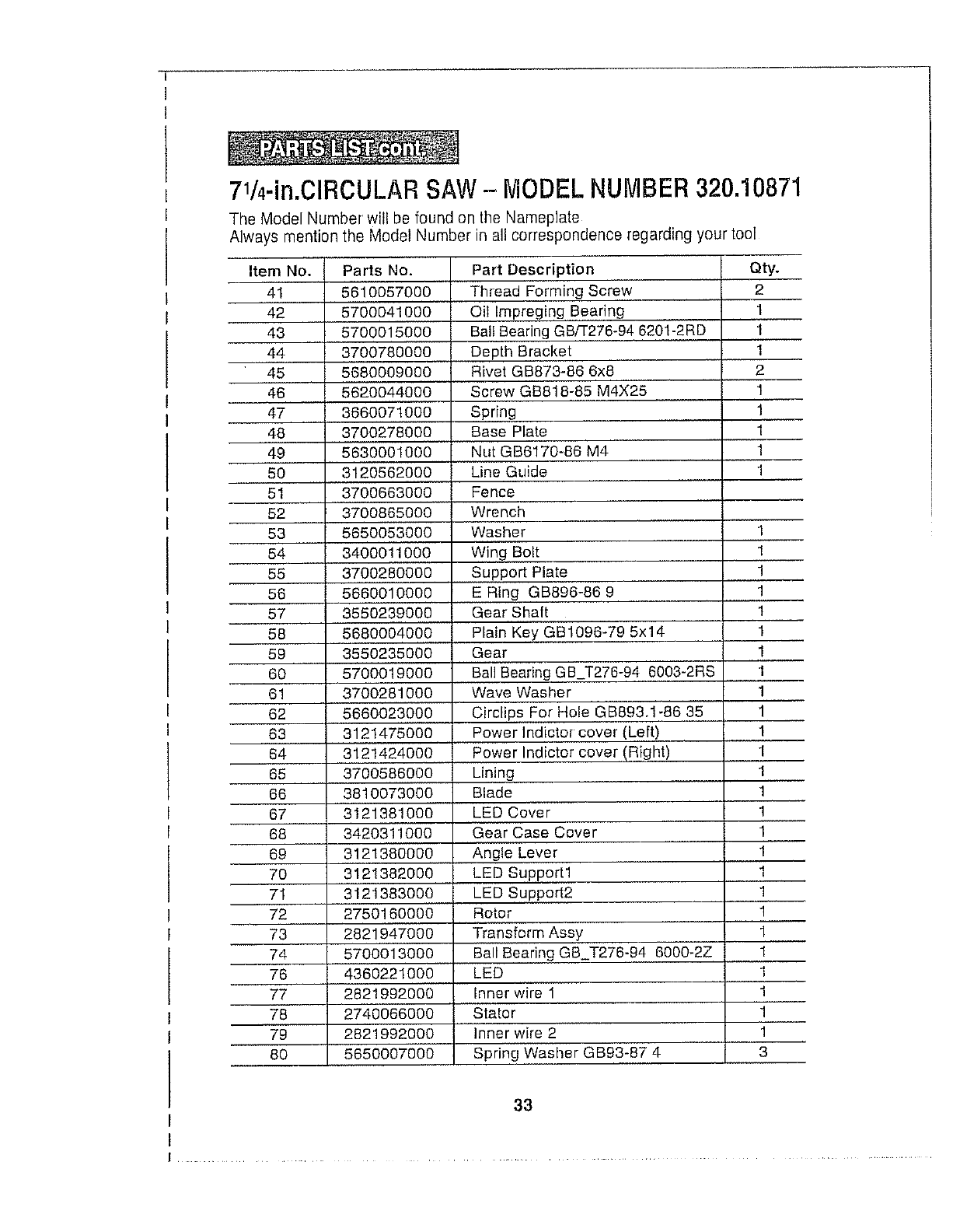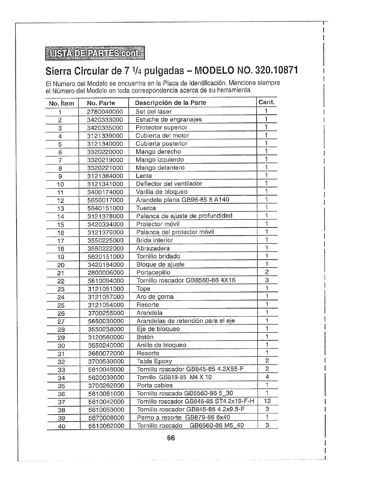 User Manual: Craftsman 32010871 32010871 CRAFTSMAN CIRCULAR SAW - Manuals and Guides View the owners manual for your CRAFTSMAN CIRCULAR SAW #32010871. Home:Tool Parts:Craftsman Parts:Craftsman CIRCULAR SAW Manual